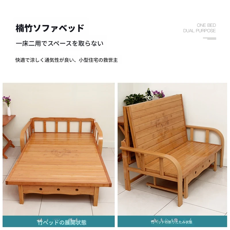 折りたたみソファベッド|2WAYダブル&シングル対応|リビングに最適な多機能デザイン|1.5mの天然木&竹製|コンパクトな小型住宅にぴったり!快適な睡眠空間を実現!