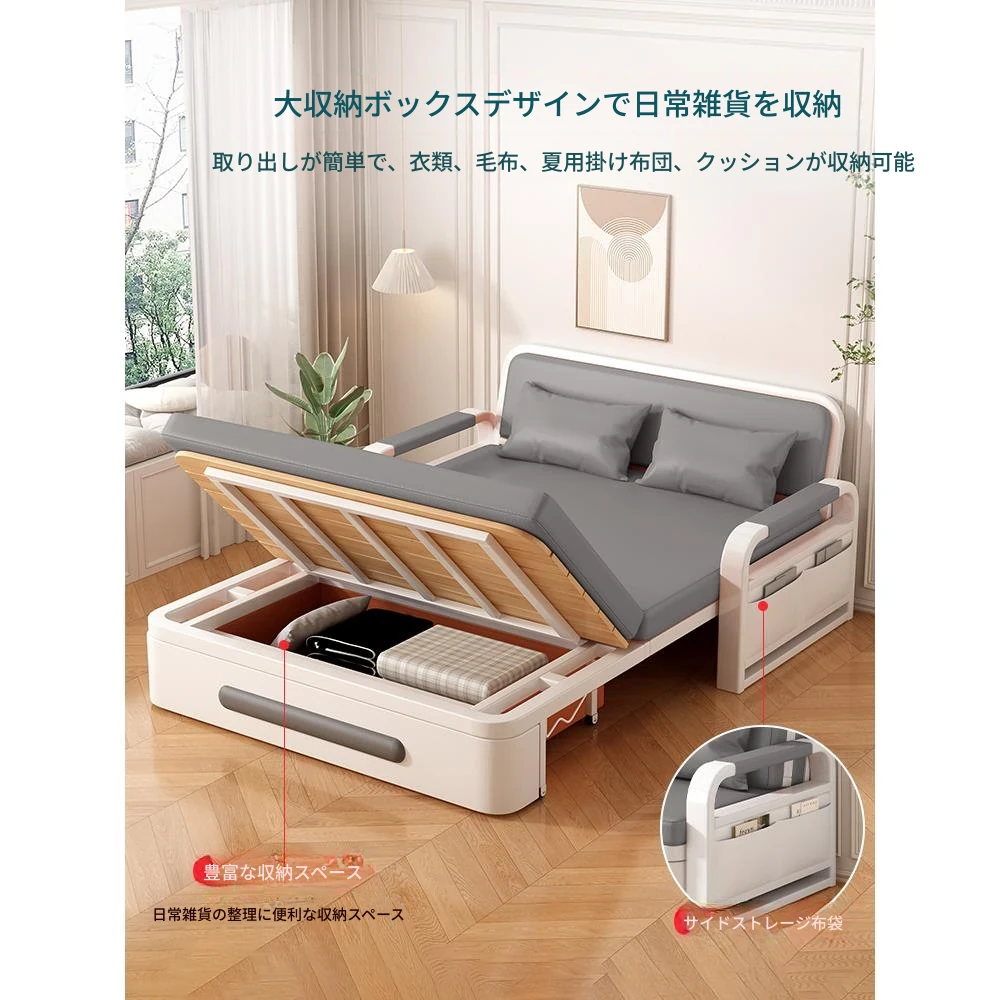 【香港送料無料】おしゃれなソファベッド!バルコニーにぴったりな2WAY折りたたみダブルベッド。狭いスペースでも使える多機能伸縮ベッドで、あなたの家をもっと快適に!