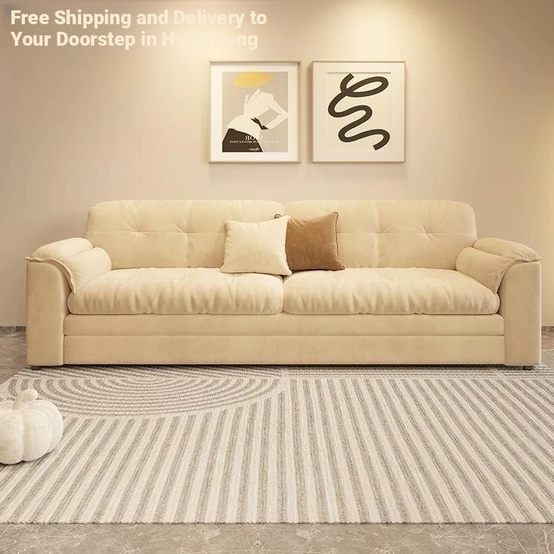 Hong Kong Free Shipping Minimalist Creamy Cloud Sofa Bed - Perfect for Small Apartments, Multi-Functional Storage Solution for Your Living Room!