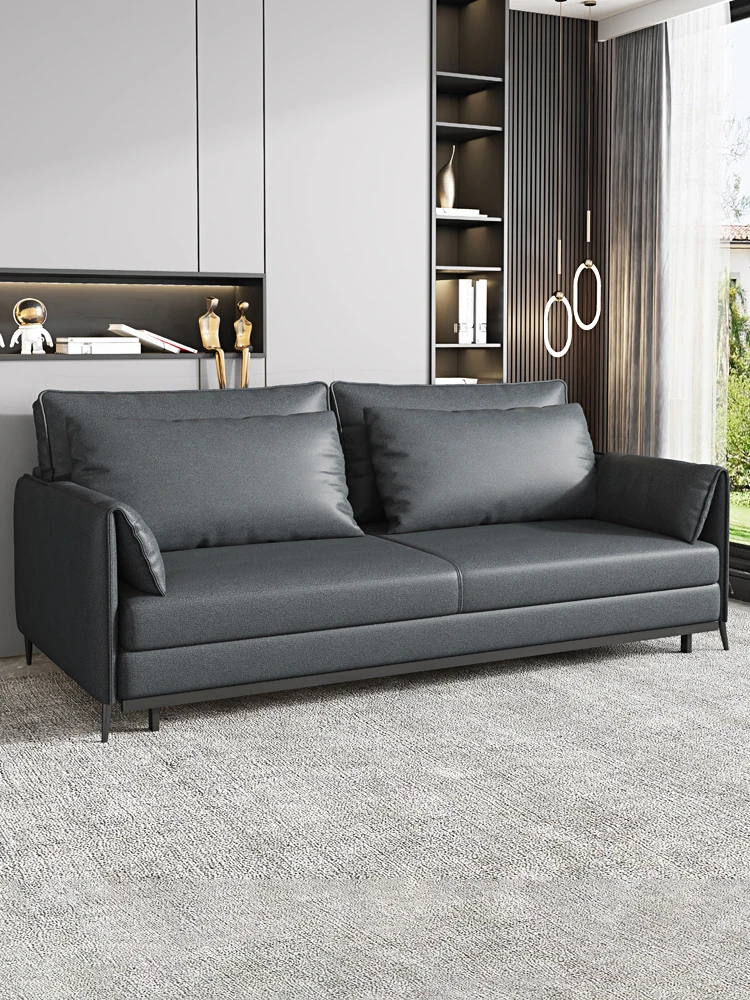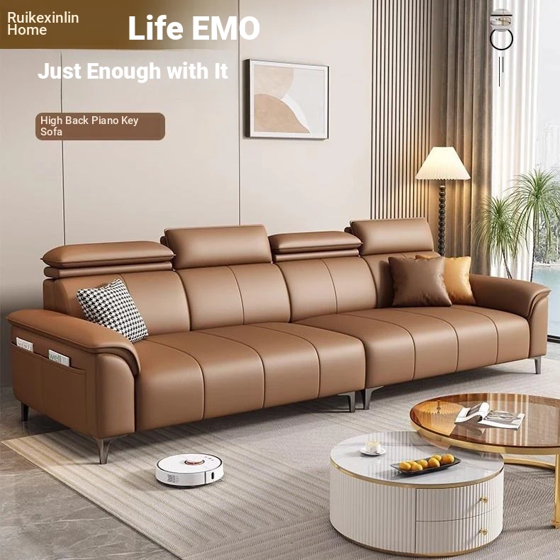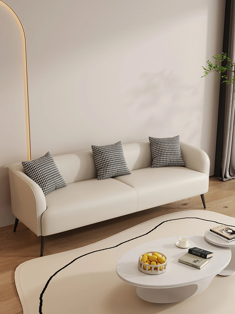 2025 New Minimalist Modern Straight-Line Sofa for Small Living Rooms - Italian Design, Scratch-Resistant Genuine Leather, Perfect for Compact Spaces