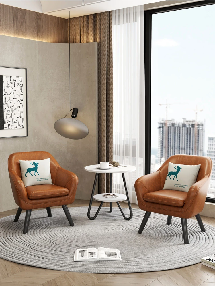 Modern Balcony Lazy Sofa - Stylish Single Chair for Small Spaces, Perfect for Hotels, Offices, and Apartments. Luxurious Leather Lounge Chair for Relaxation.
