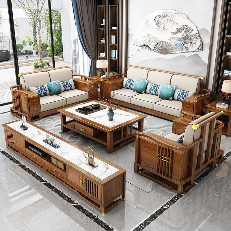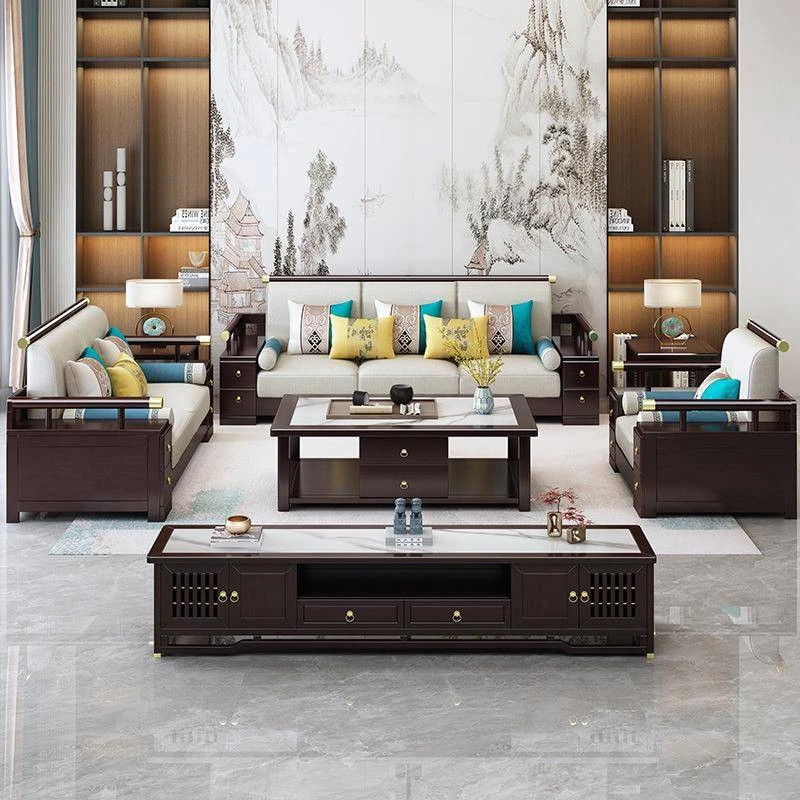 Modern Minimalist New Chinese Solid Wood Sofa Set for Living Room - Versatile Light Luxury Design for Small and Large Spaces, Perfect for Year-Round Use in Winter and Summer