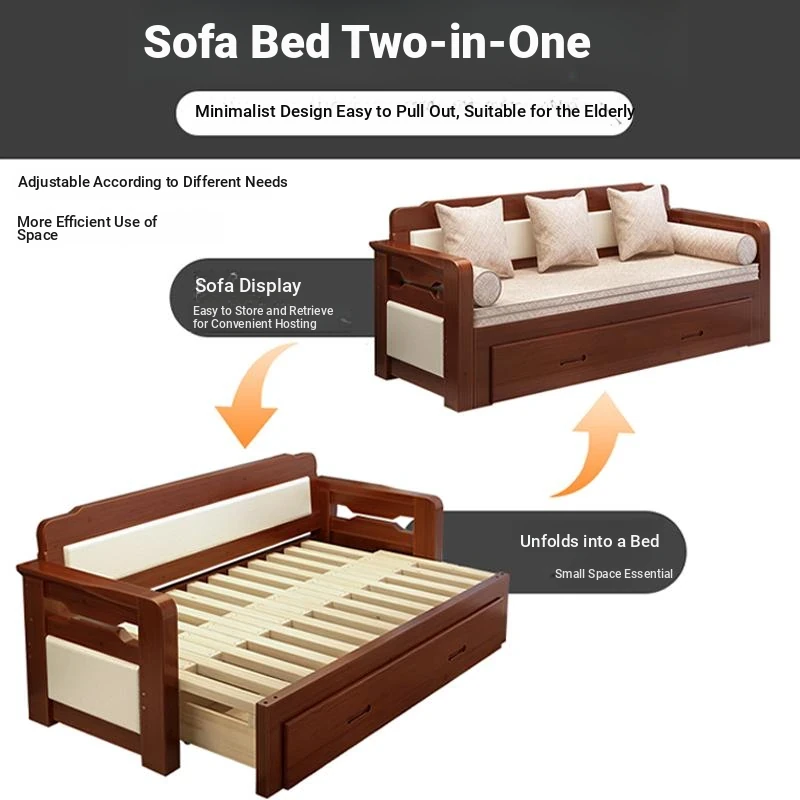 Multifunctional Folding Solid Wood Sofa Bed - Space-Saving Pull-Out Design for Small Apartments, Stylish and Versatile Double Sofa Bed, Perfect for Modern Living Rooms