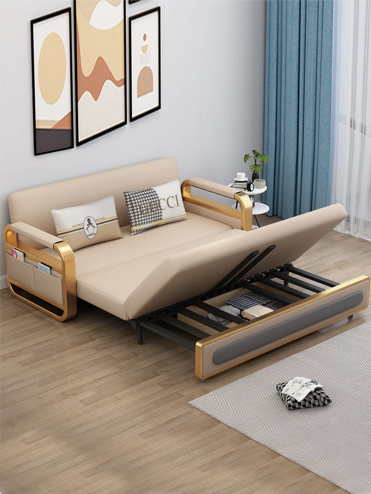 Hong Kong Free Shipping Multi-Functional Foldable Sofa Bed with Storage - Modern Minimalist Design for Small Spaces, Double Size with Comfortable Latex.