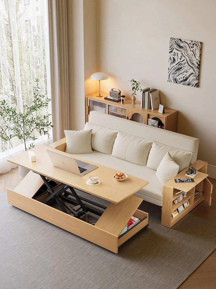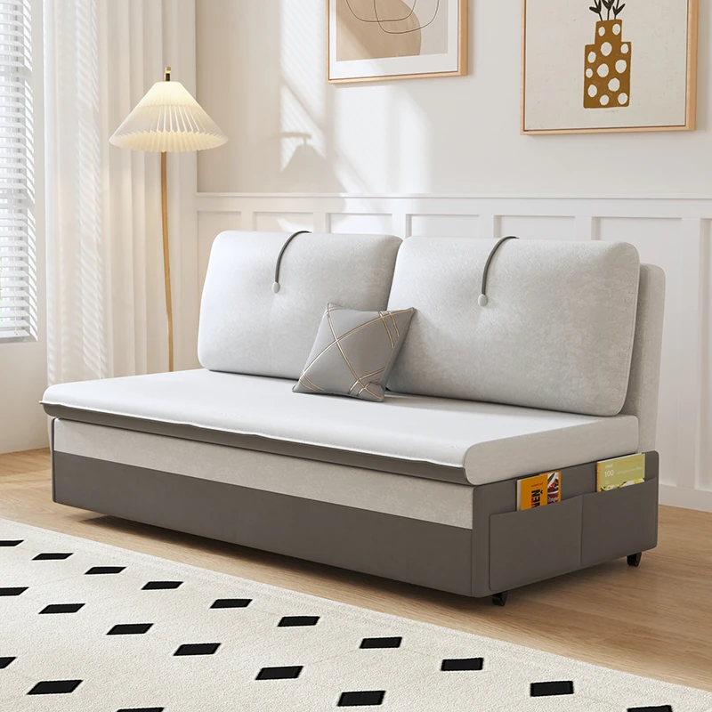 Versatile Luxury Sofa Bed: Foldable Fabric Design with Retractable Features for Small Living Spaces, Includes Wooden Storage Box – Perfect for Modern Homes!