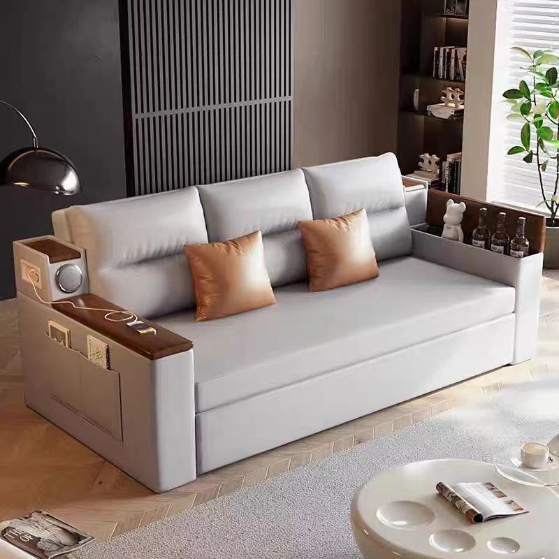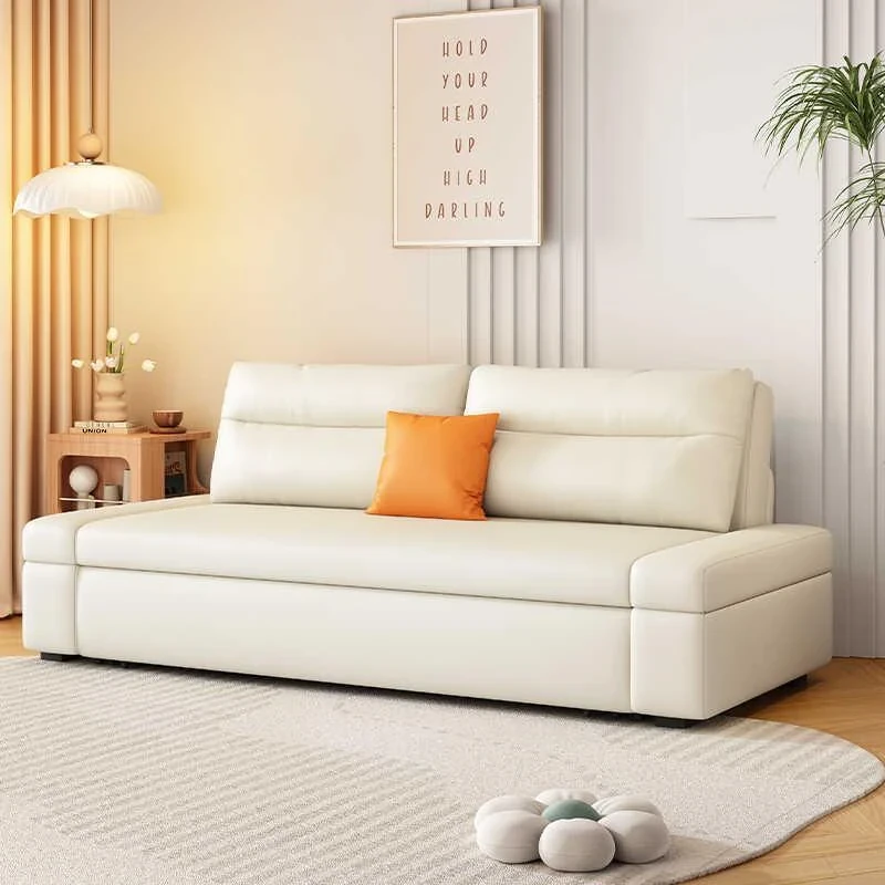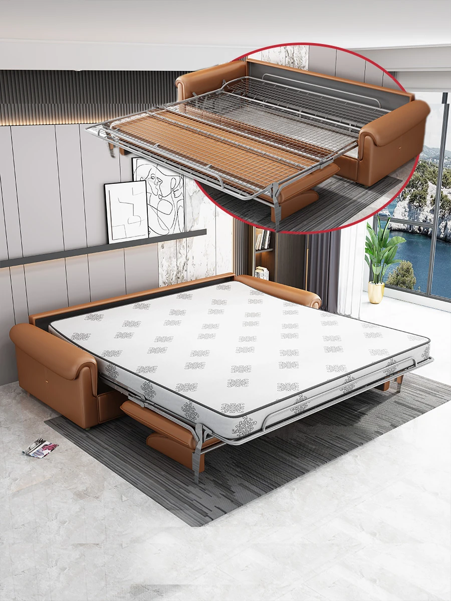 Nordic Luxury Genuine Leather Sofa Bed with Built-in Mattress - Versatile Folding Design for Comfortable Sleep and Stylish Living Room Use