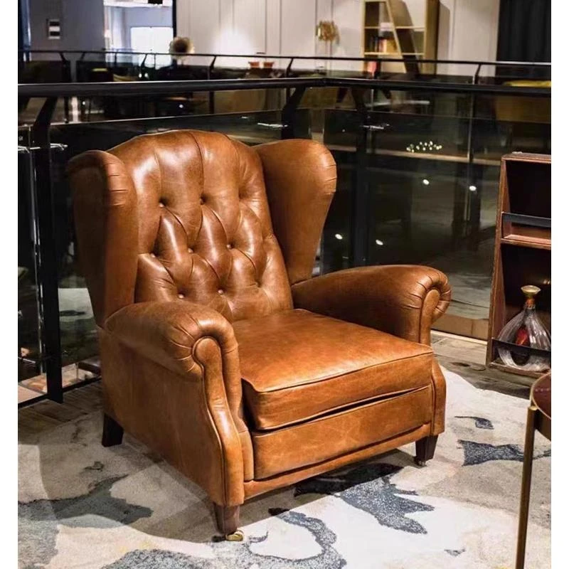 Classic 1919 American Tiger Chair - Vintage Rustic Solid Wood & Genuine Leather Single Chair, Godfather Chair with High Back - Perfect for a Timeless Home Decor