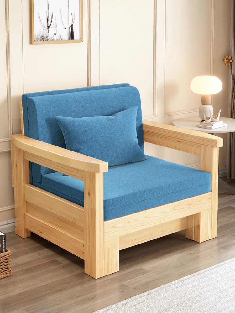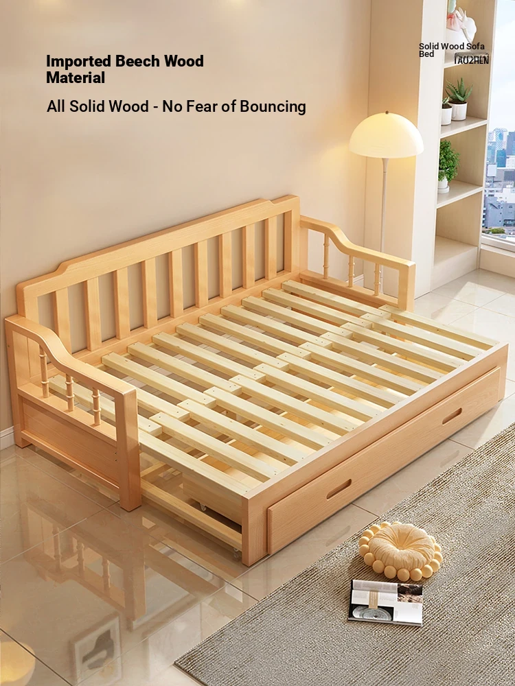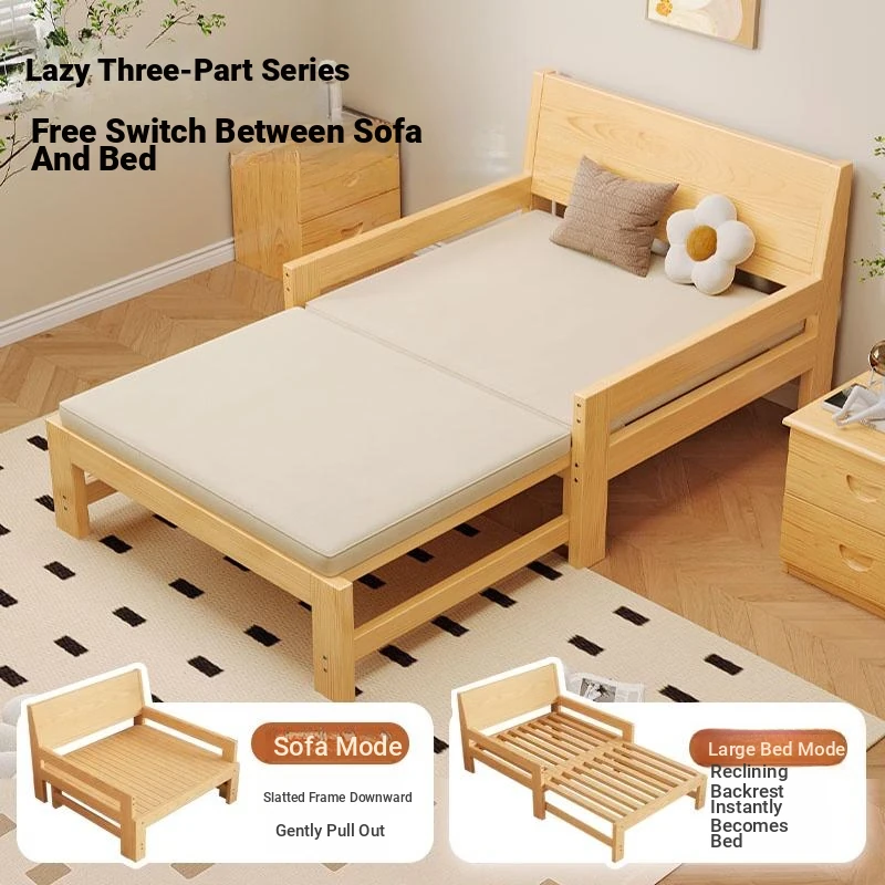 Multifunctional Solid Wood Sofa Bed - Space-Saving Foldable Couch for Small Apartments, Versatile Single Pull-Out Sleeper for Living Room