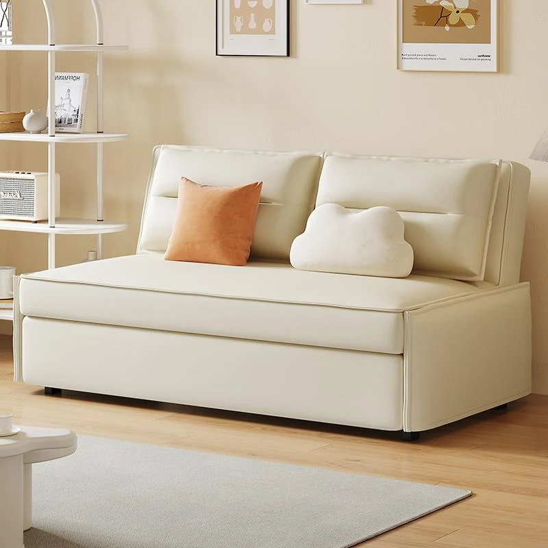"2024 New Hong Kong Compact Sofa Bed - Foldable Dual-Purpose Design for Small Spaces, Perfect for Living Room or Study, with Storage and Stylish Cream Finish"