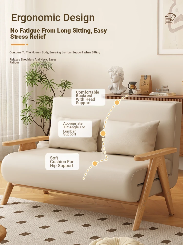Multifunctional Solid Wood Sofa Bed - Foldable Design for Living Room, Space-Saving Single (1.2m) and Double (1.5m, 1.8m) Options for Small Spaces