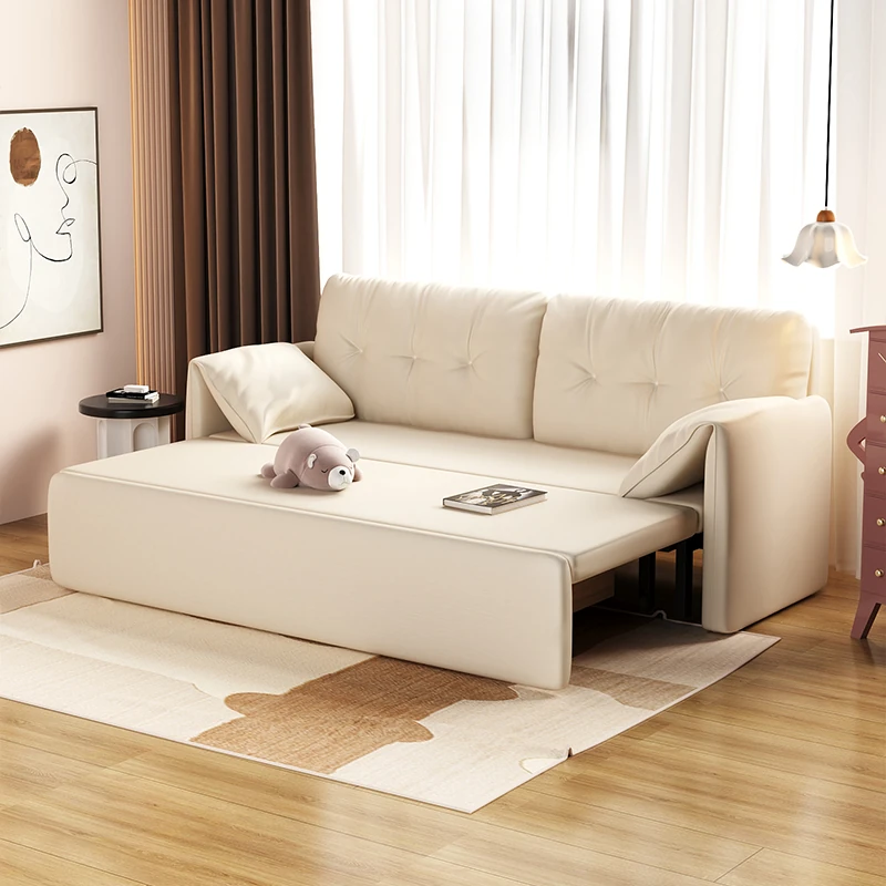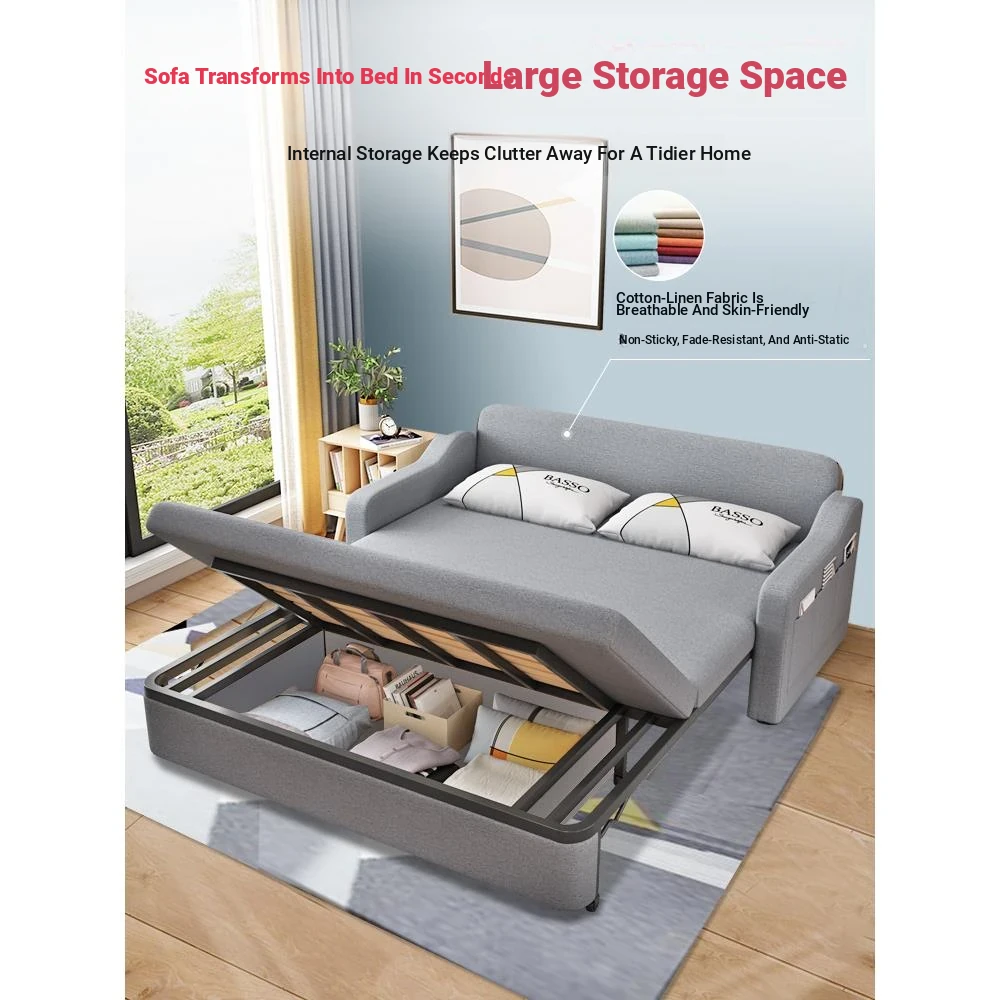 Multifunctional Solid Wood Sofa Bed for Living Room - Foldable, Pull-Out Design for Small Spaces, 1.5m and 1.8m Options, Perfect for Couples, Dual Use as Sofa and Bed, Ideal for Compact Living!