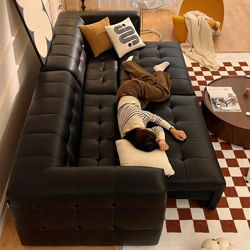 Italian Minimalist Black Cotton Candy Sofa - American Vintage Wabi-Sabi Style Silicone Leather Electric Reclining Sofa Bed