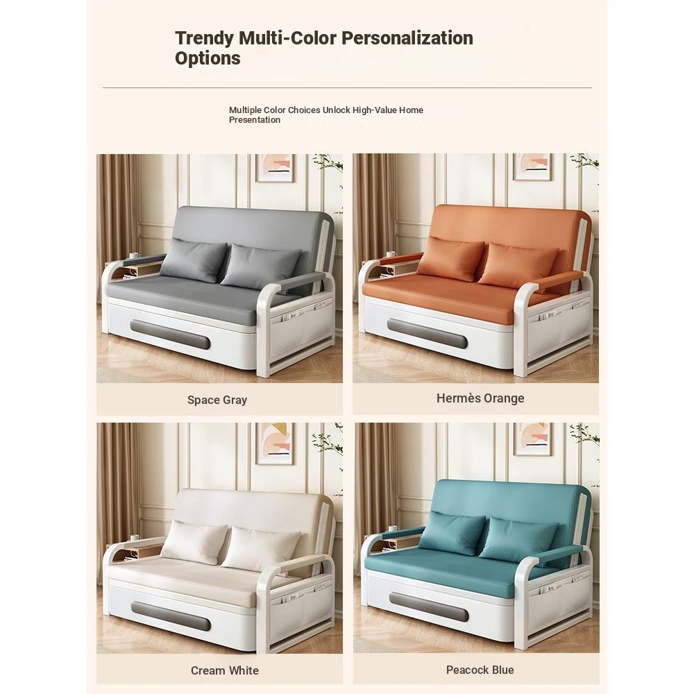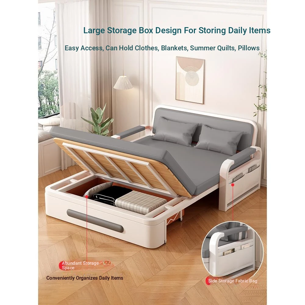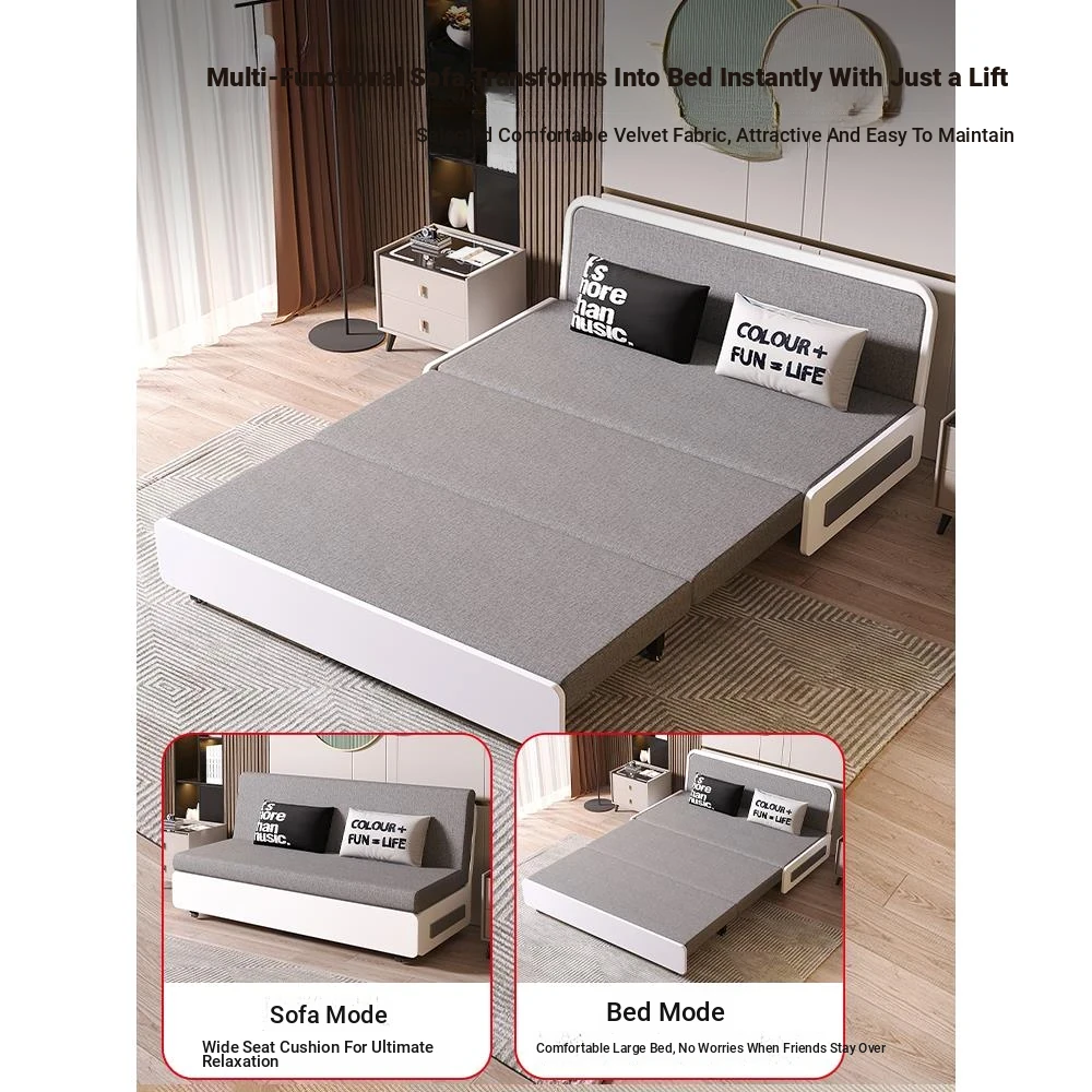 Stylish European Iron Multifunctional Sofa Bed - Versatile Pull-Out Design for Sitting and Sleeping, Compact Folding Double Bed with Easy Slide Mechanism. Perfect for Small Spaces!