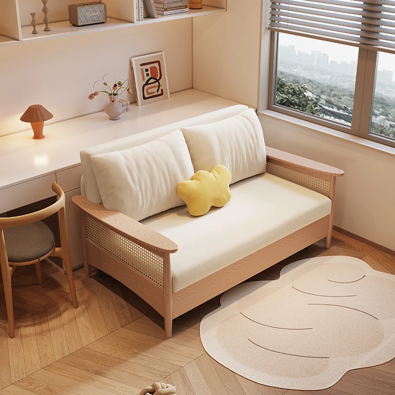 【Free Shipping in Hong Kong】Xinyingju Rattan Folding Sofa Bed - Multifunctional Solid Wood Expandable Nordic Style for Small Spaces, Perfect for Your Study Room!