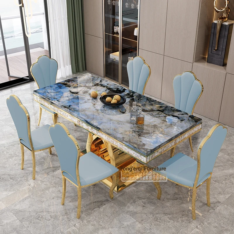 Jingtai Blue Luxury Stone Long Dining Table Set - Elegant Dining Room Collection for Villas and Mansions, Featuring Chic Dining Table and Chair Combination. Perfect for Stylish Entertaining!
