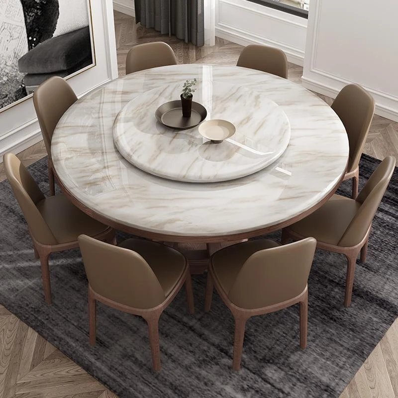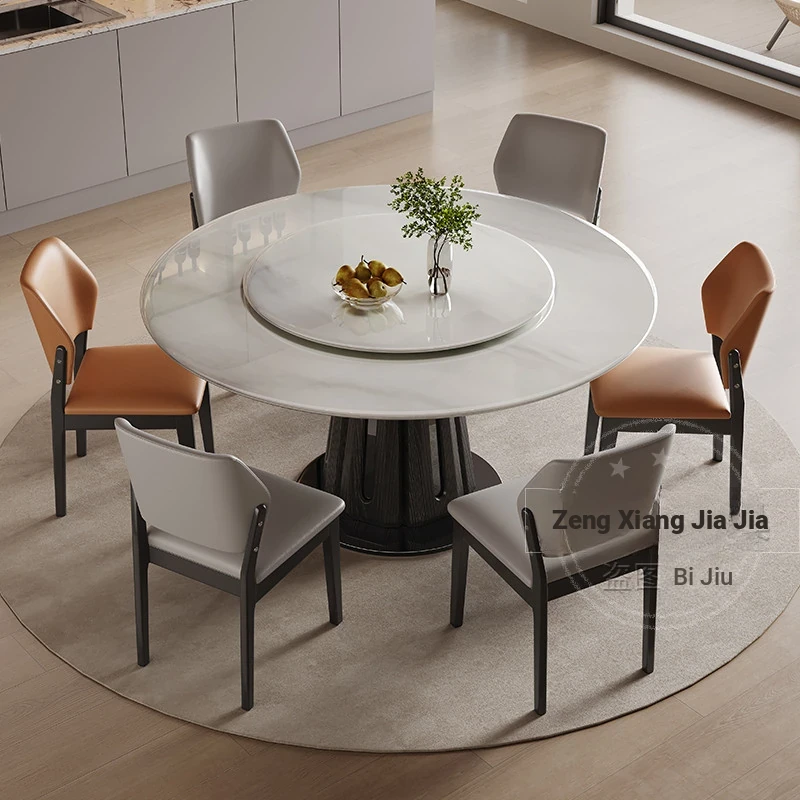 Natural Ultra-Crystal Stone Round Dining Table with Rotating Plate - Modern Minimalist 8-Person Marble Table for Luxurious Home Dining Experience
