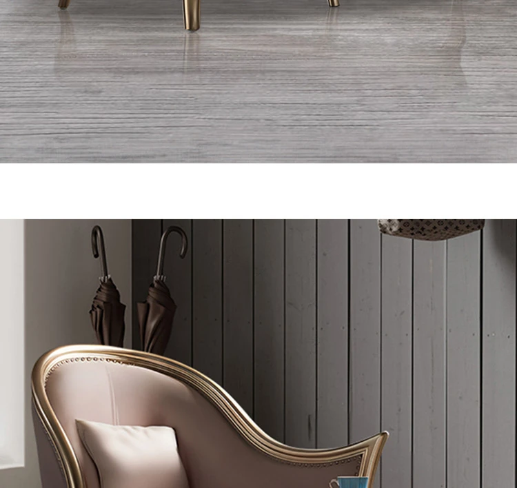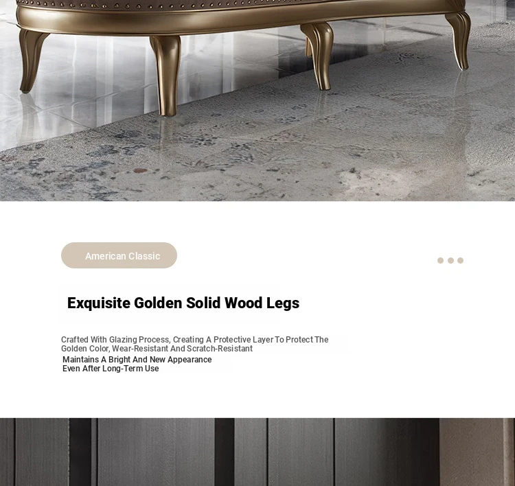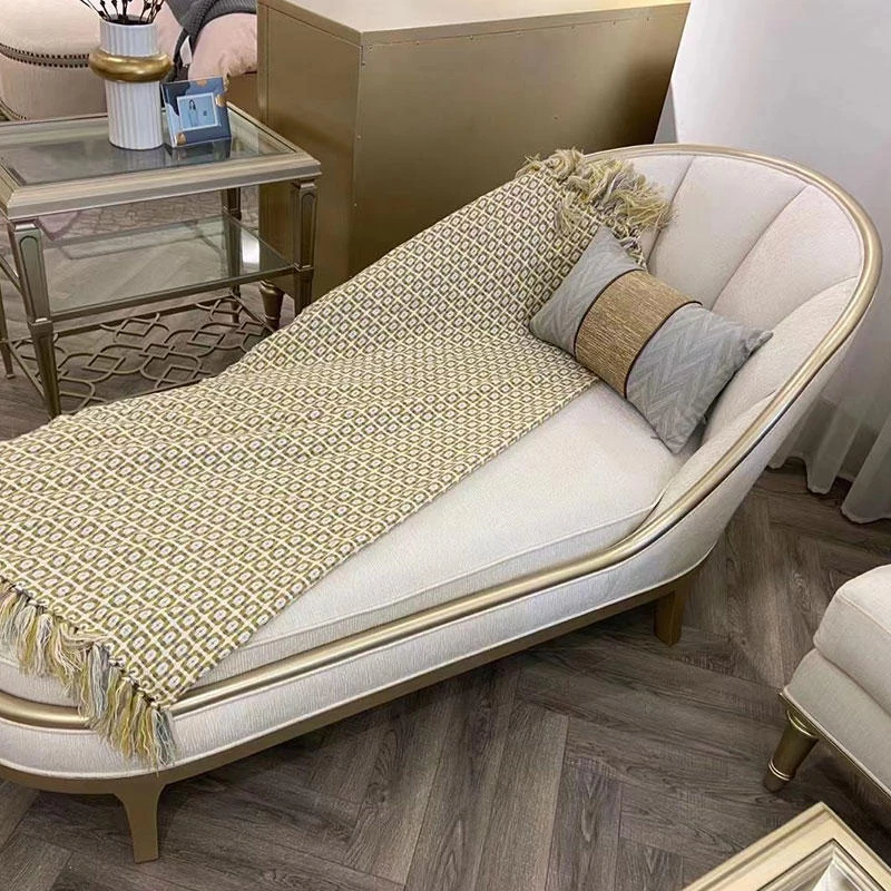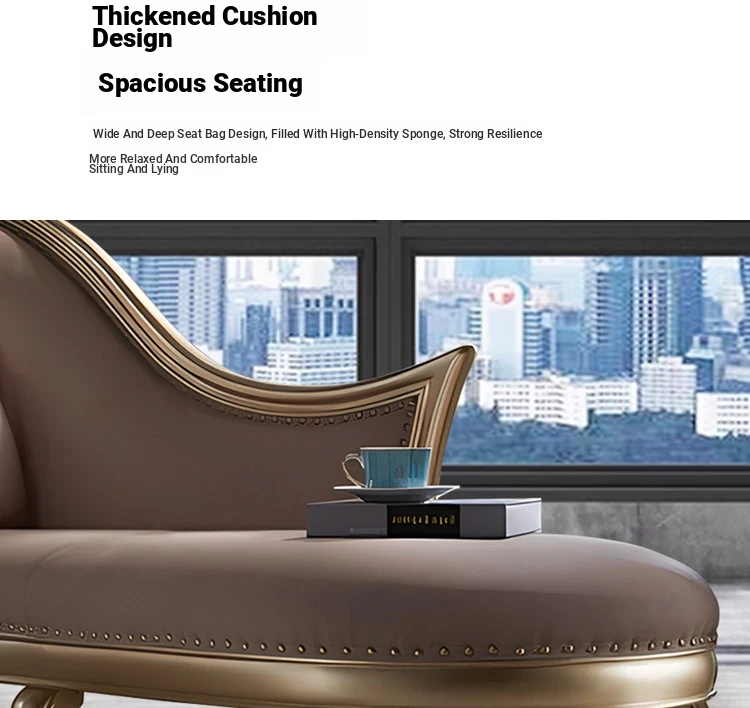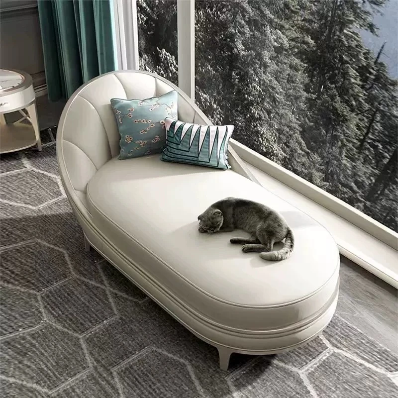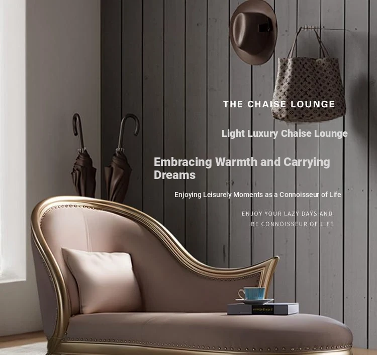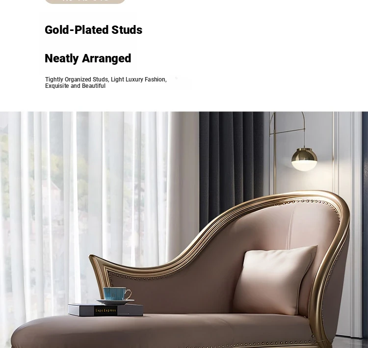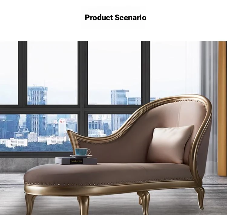 American Light Luxury Solid Wood Leather Chaise Lounge - Elegant European Style Single Sofa for Living Room and Bedroom, Perfect for Sample Room Décor and Relaxation.