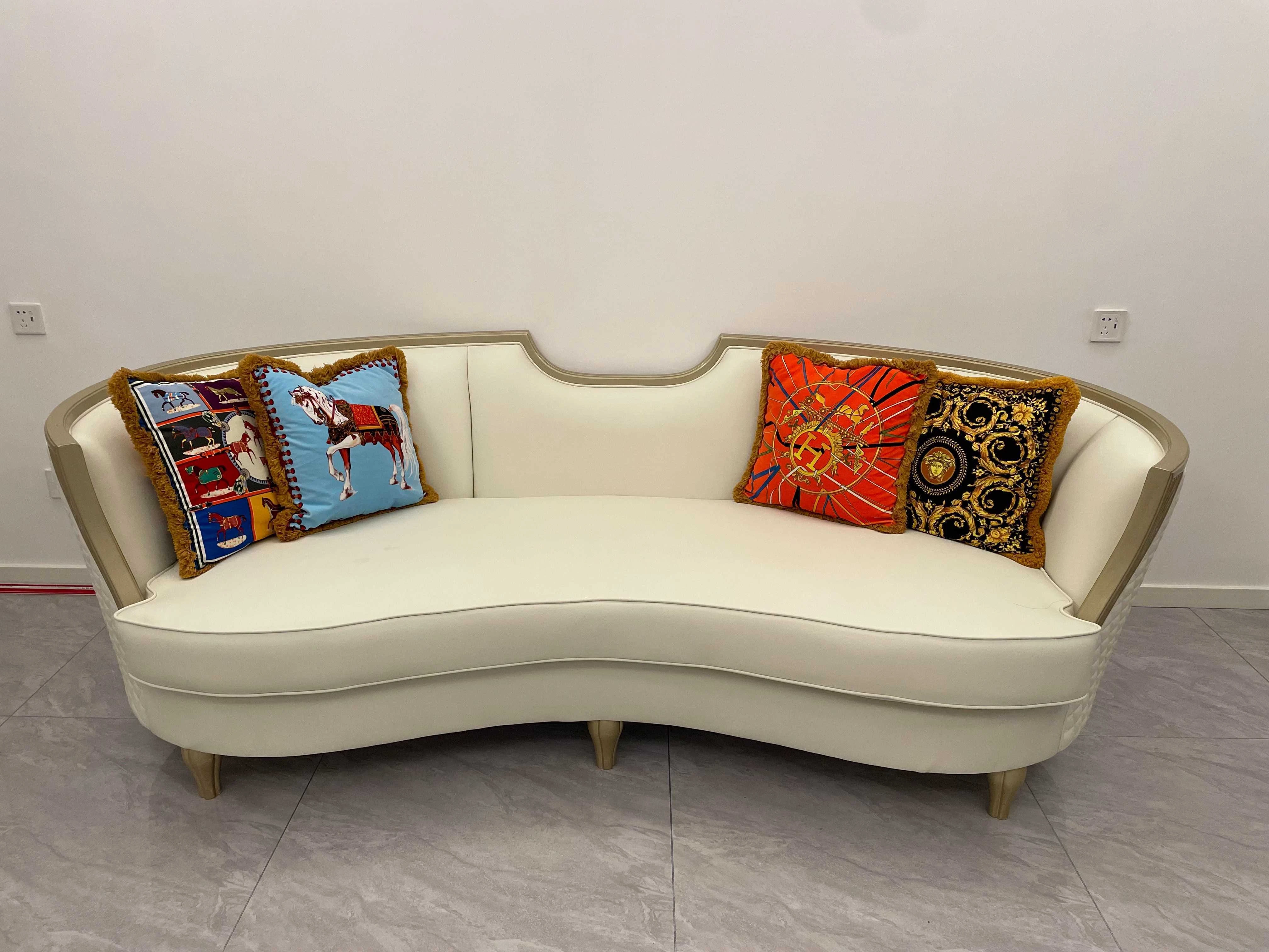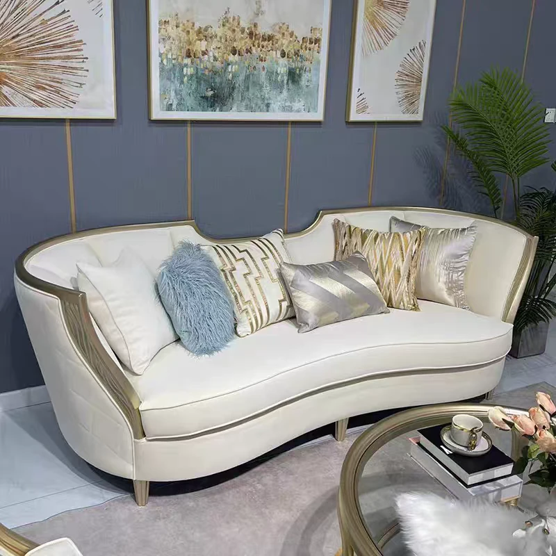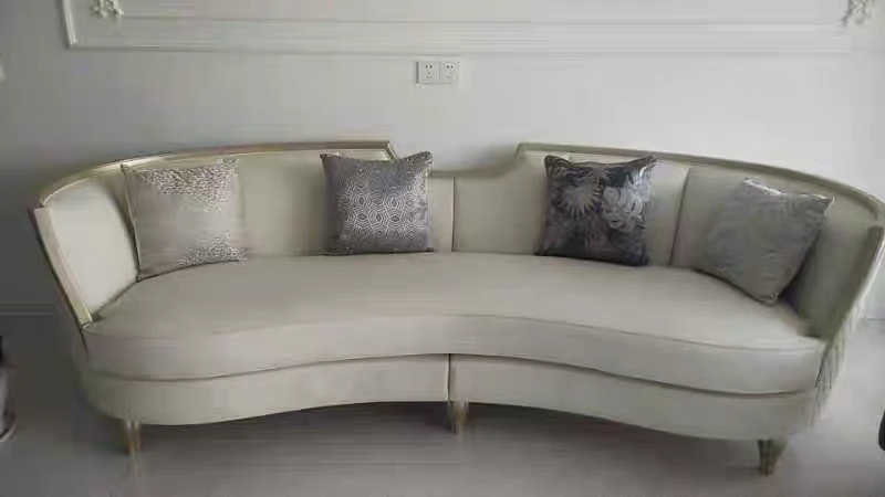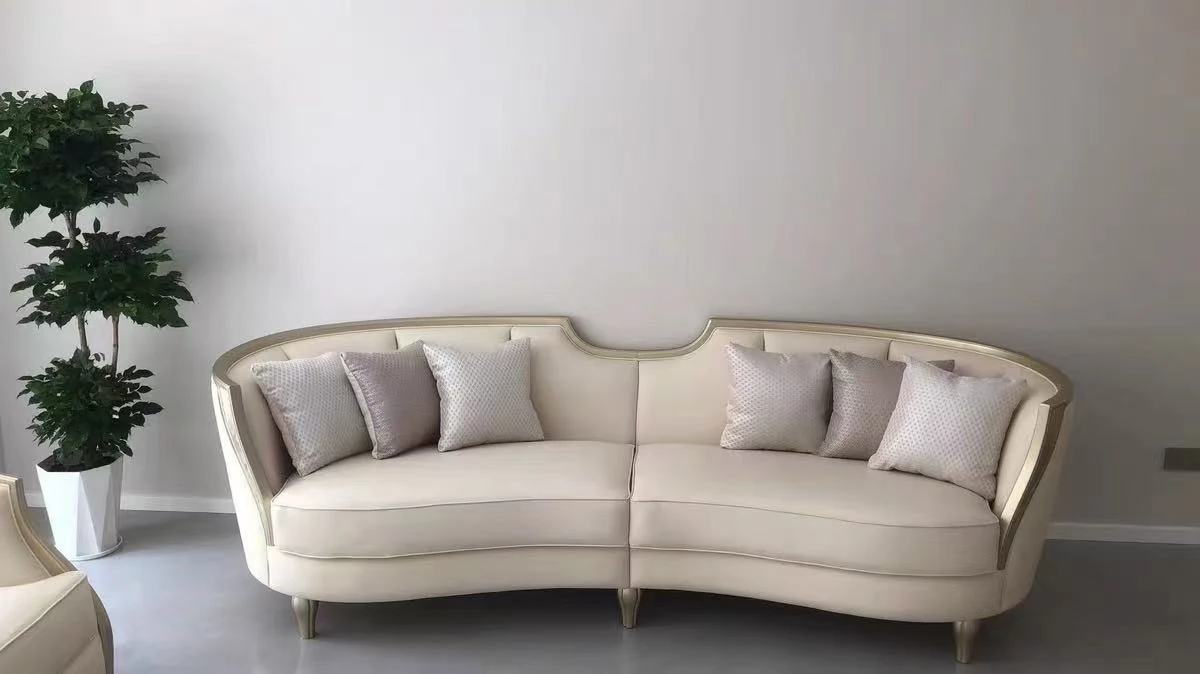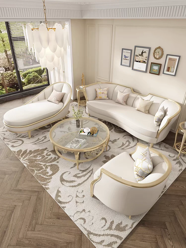 American Solid Wood Sofa - French Minimalist Luxury Living Room Set, Curved Design - Meike Adela Creamy Style Sofa