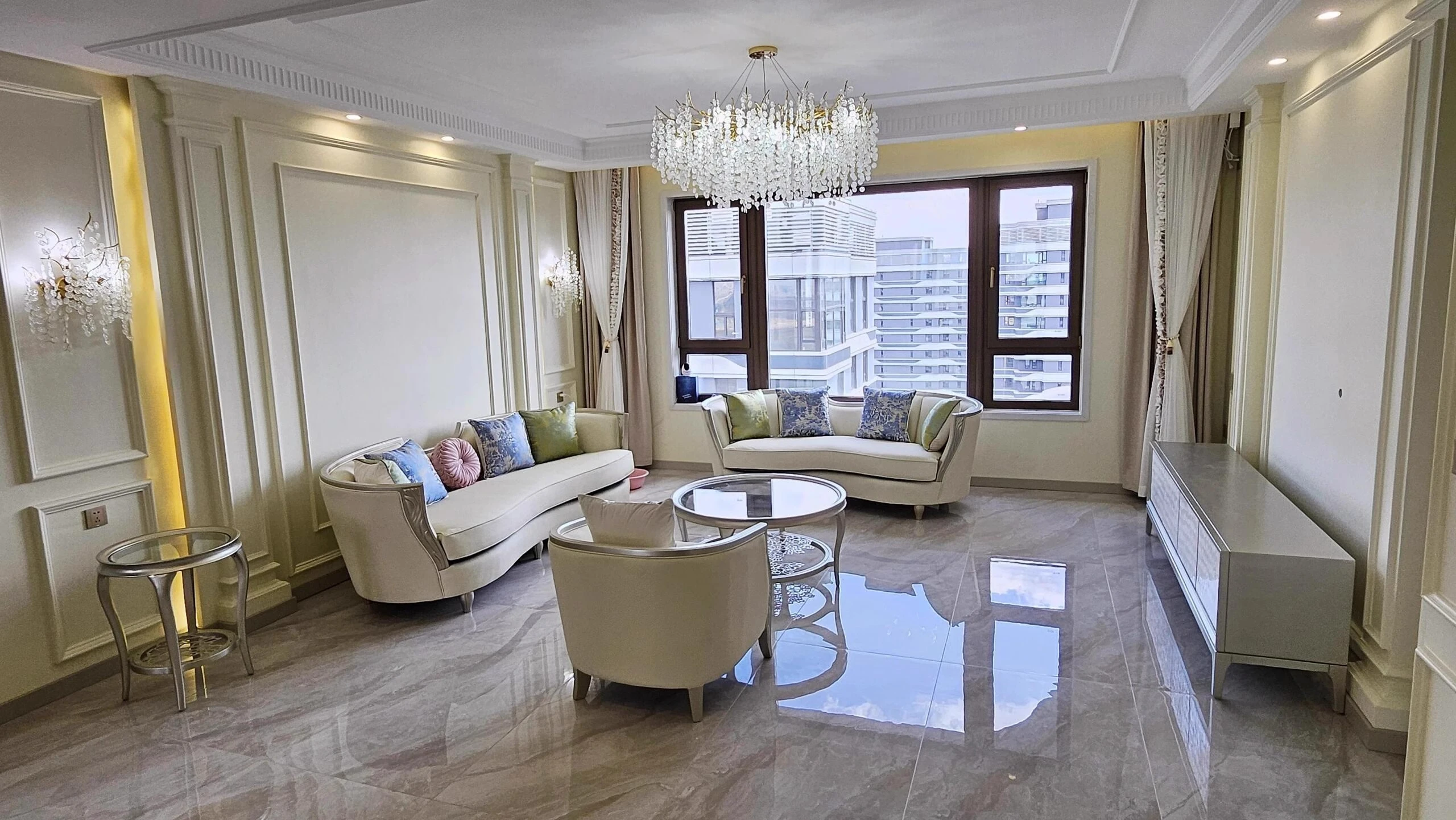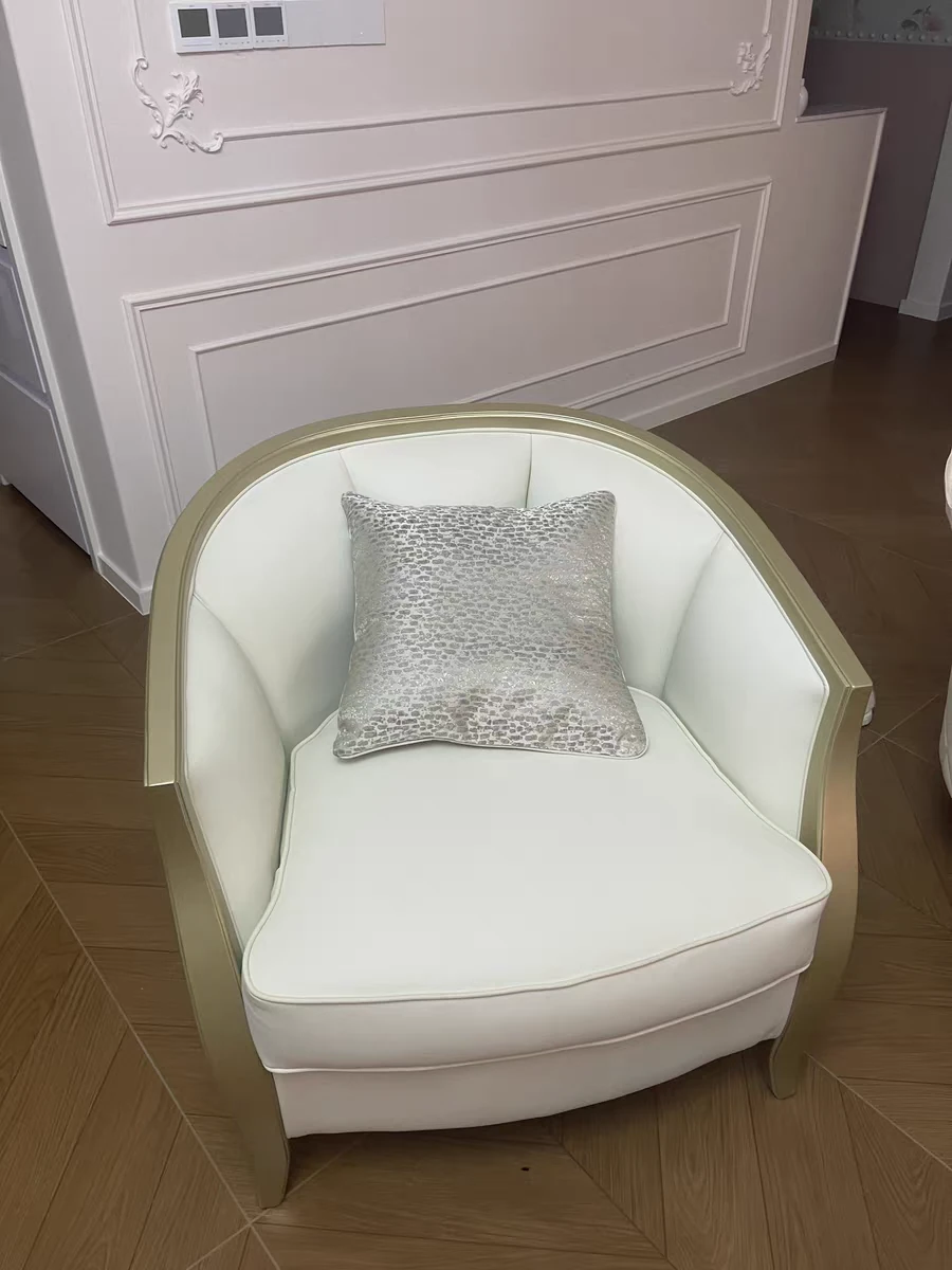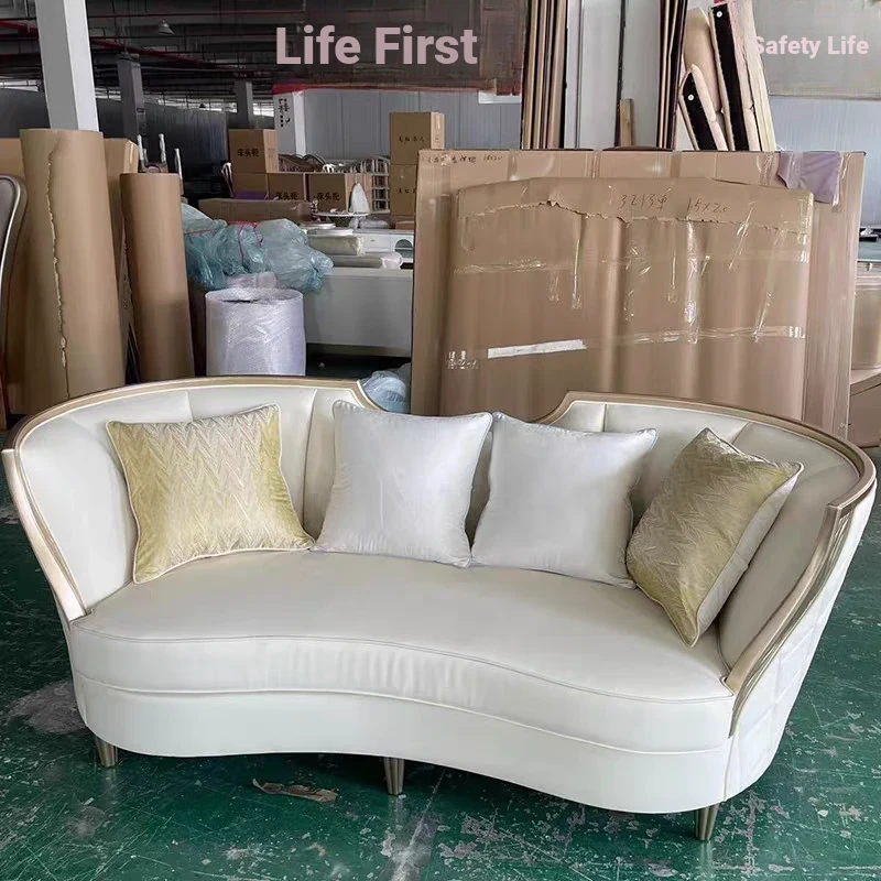 American Solid Wood Sofa - French Minimalist Luxury Living Room Set, Curved Design - Meike Adela Creamy Style Sofa