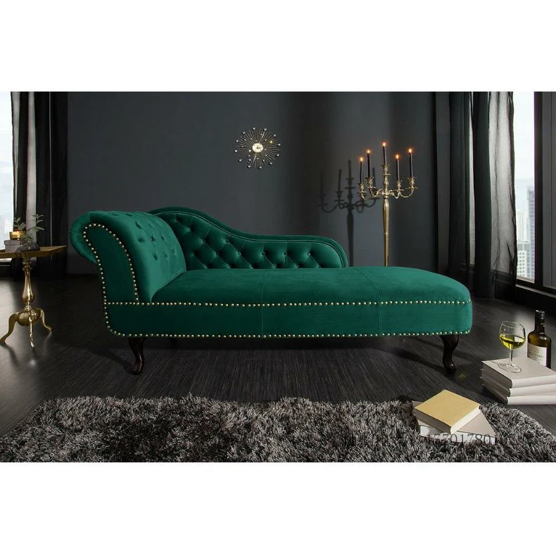American Style Elegant Emerald Green Chaise Lounge Sofa - Minimalist Modern for Living Room, Balcony, and Relaxation. Perfect for Creating a Chic and Comfortable Space!