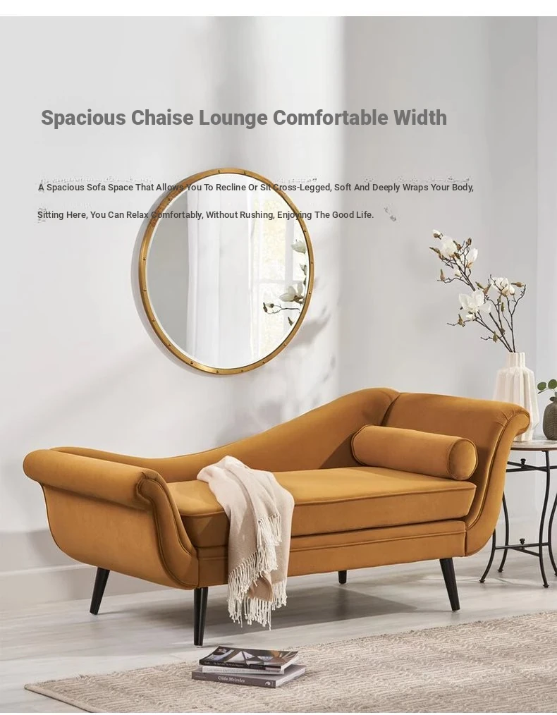 American Style Upholstered Chaise Lounge - Elegant Velvet Daybed for Small Spaces, Perfect Single Lazy Sofa Chair, Minimalist Luxury Design for Your Bedroom