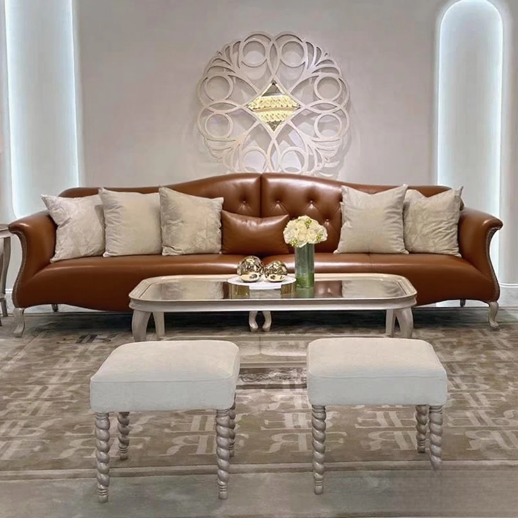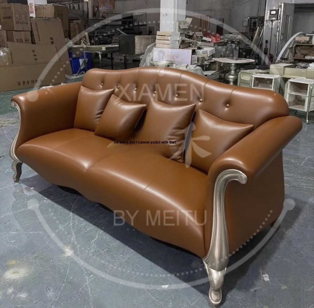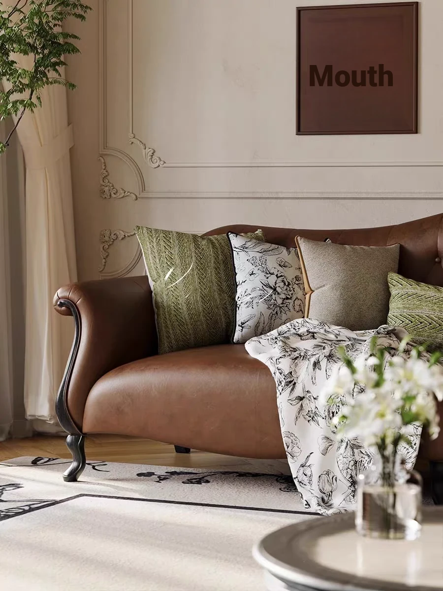 American-Style Solid Wood Genuine Leather Sofa – Vintage Cream Aesthetic, Perfect for Small Spaces, High-End Living Room, Trendy Straight Sofa, Retro Design