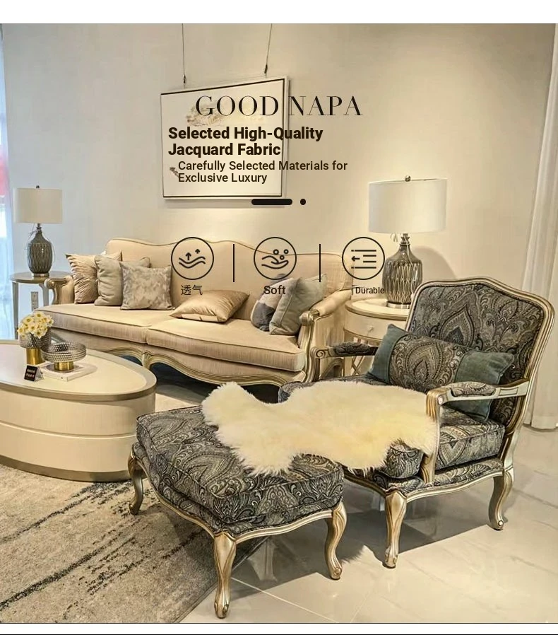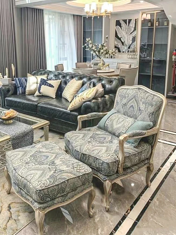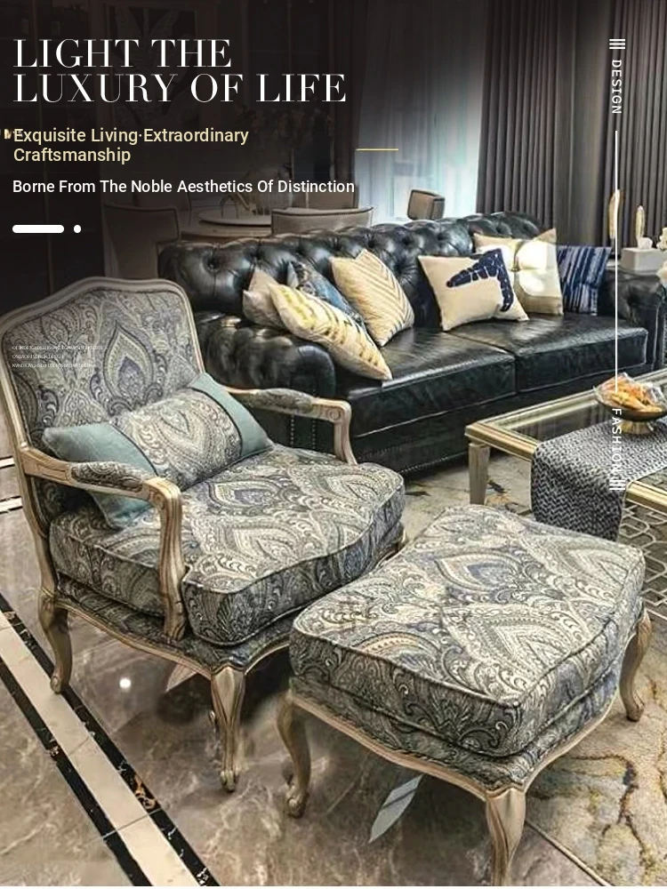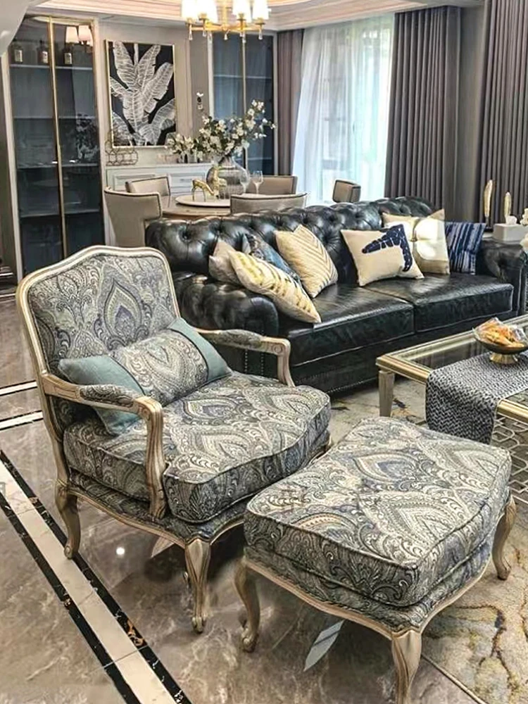 Elegant American Style Solid Wood Fabric Single Sofa - French-Inspired Luxury Tiger Chair for Living Room - European Leisure Armchair & Sofa Chair