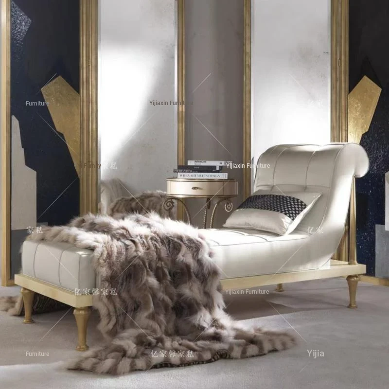 Elegant European-Style Solid Wood Chaise Lounge – Plush Upholstered Single Recliner Sofa for Relaxation – Perfect for Leisure and Comfort