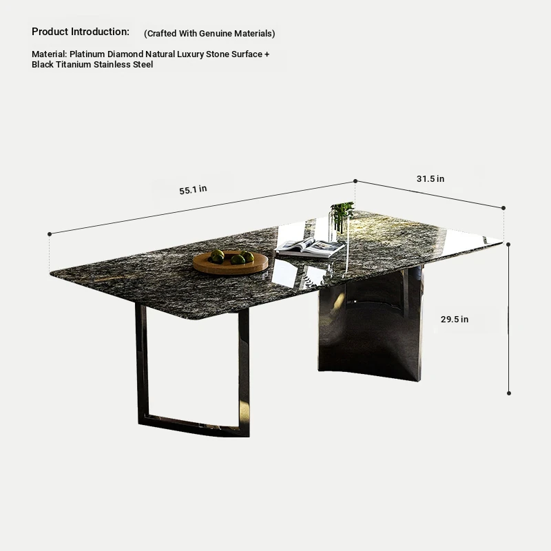[Natural Platinum Diamond Luxury Stone Surface] Dining Table 55.12 in