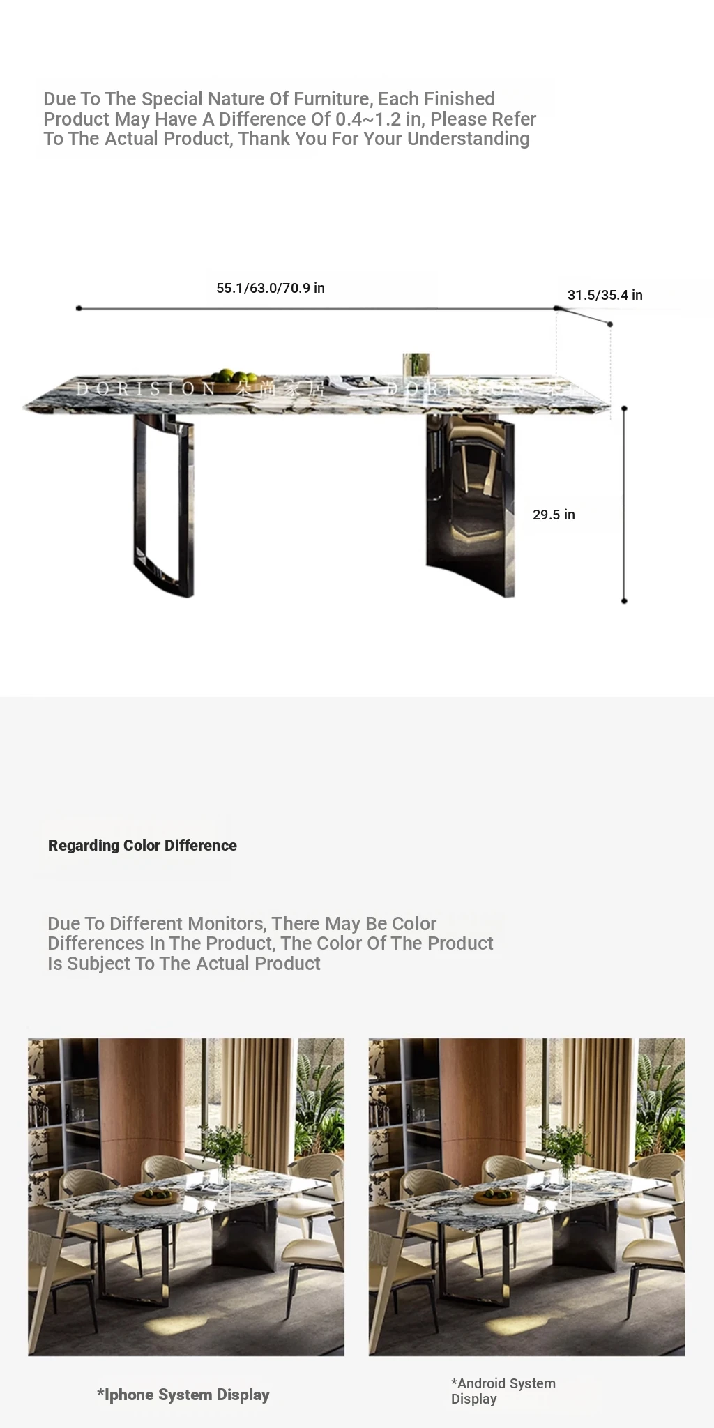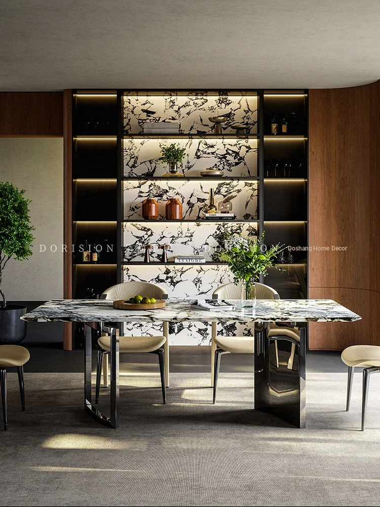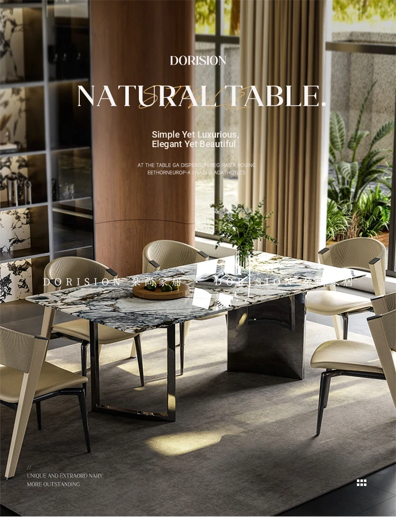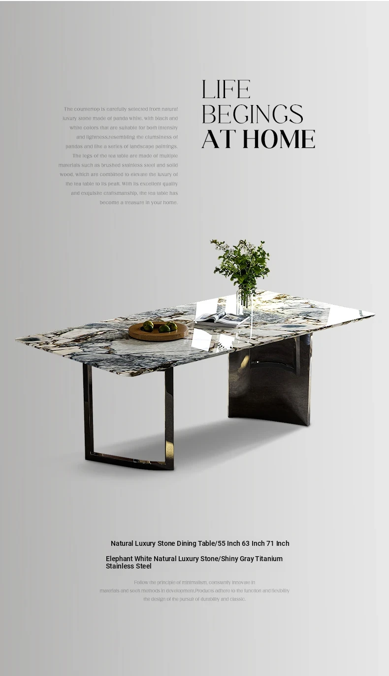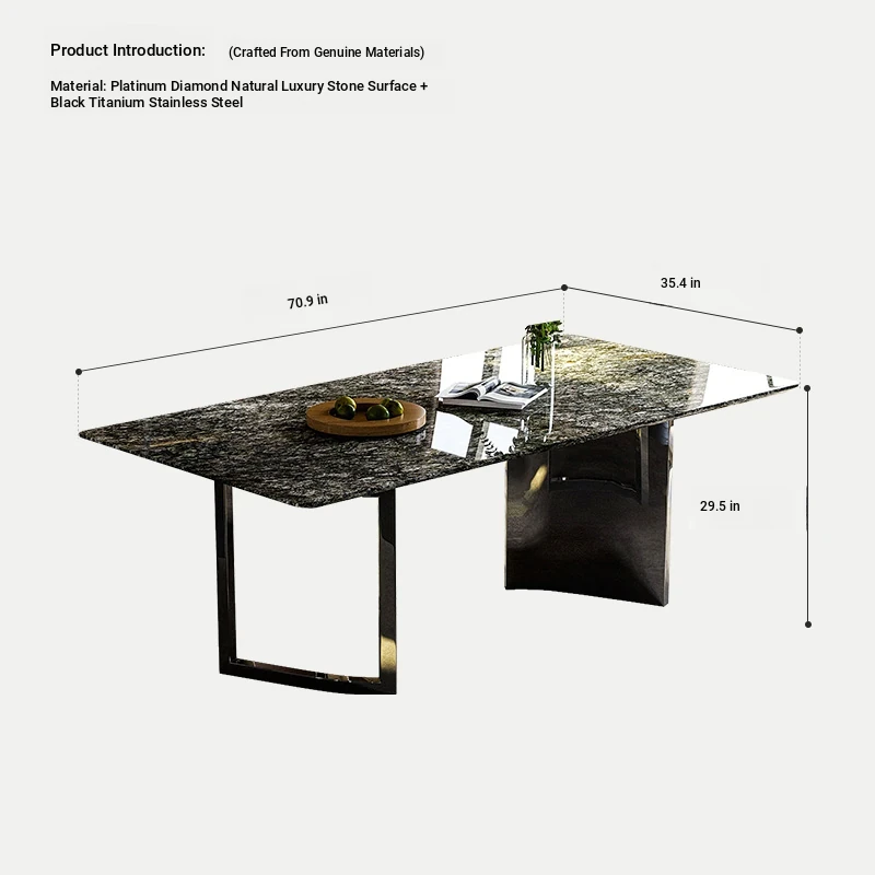 [Natural Platinum Diamond Luxury Stone Surface] Dining Table 70.87 in