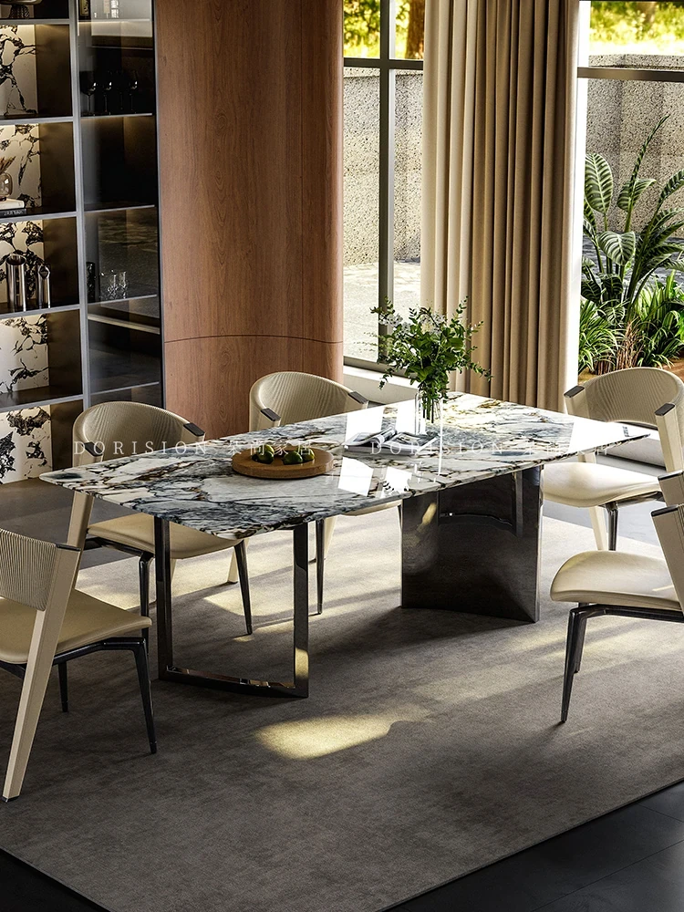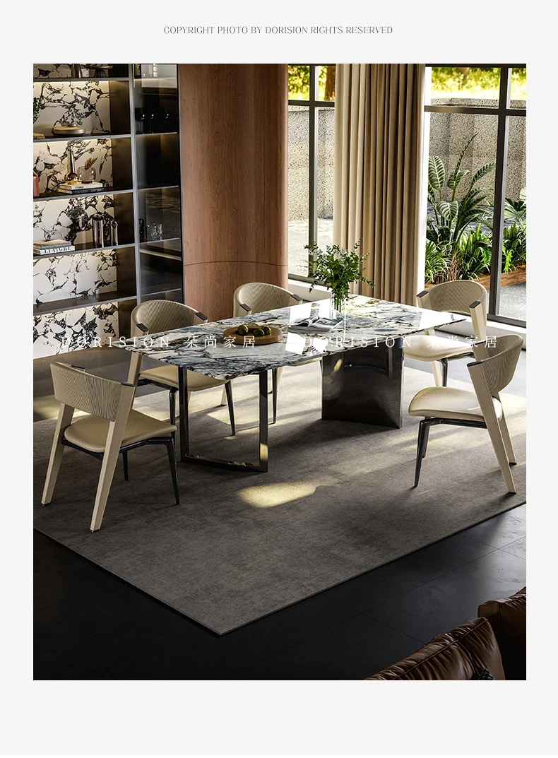 Elegant Modern Dining Table Set - Simple and Chic Stainless Steel Rectangular Marble Table for Home Use, Perfect for Contemporary Italian Minimalist Style
