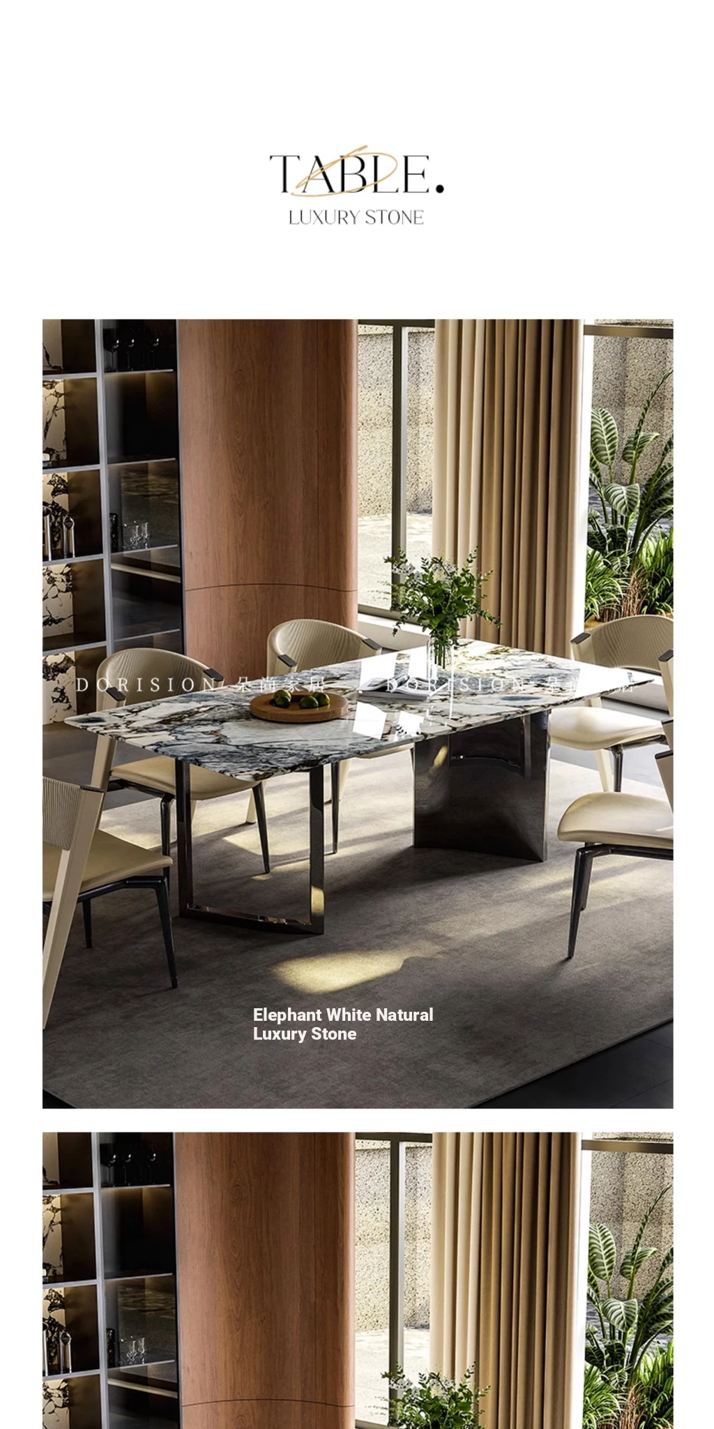 [Natural Elephant White Luxury Stone Surface/Main Color] Dining Table 70.87 in