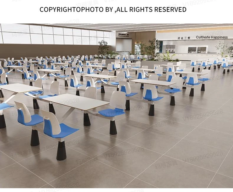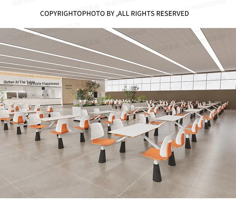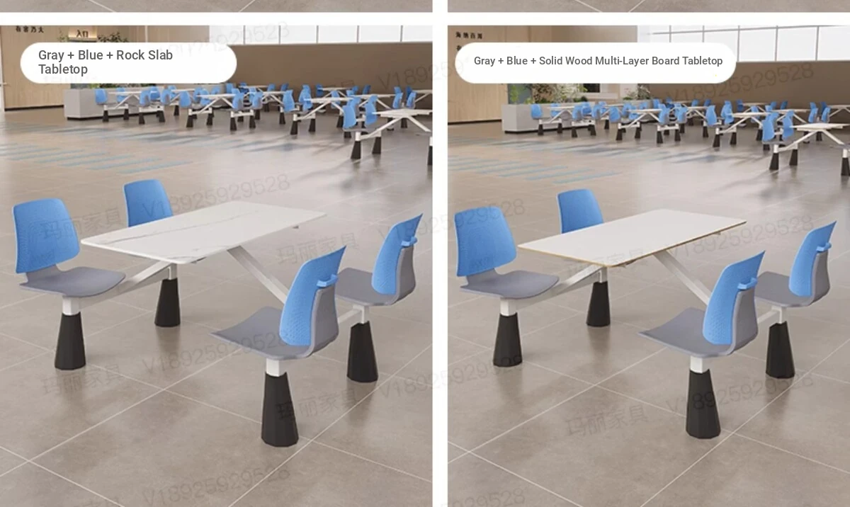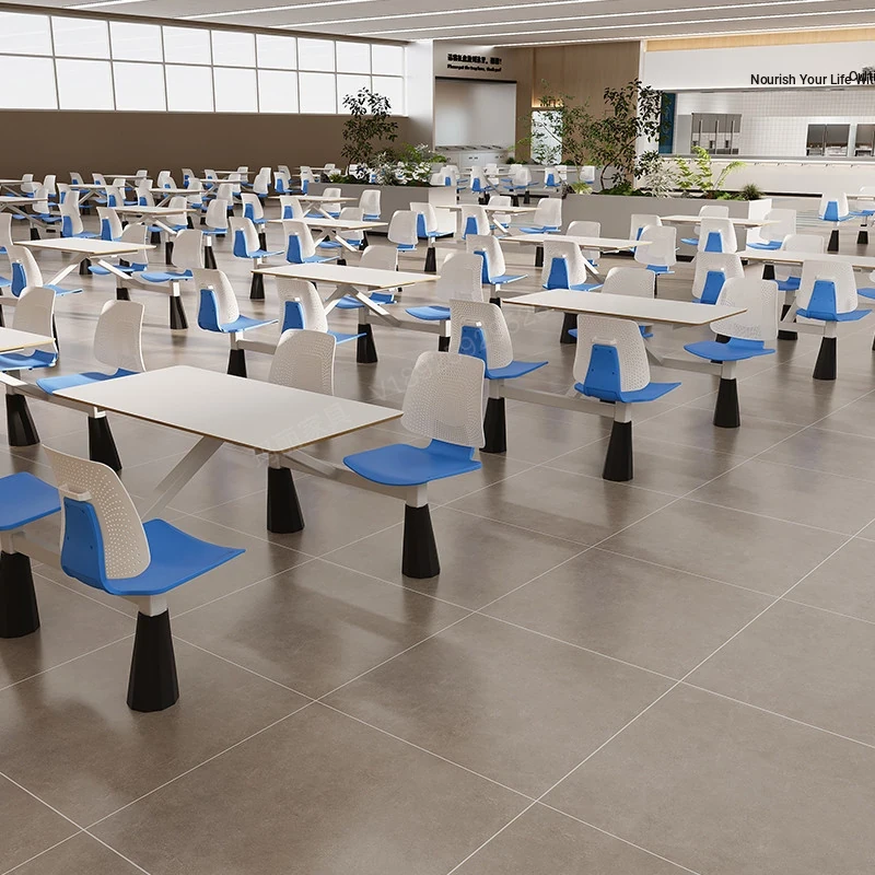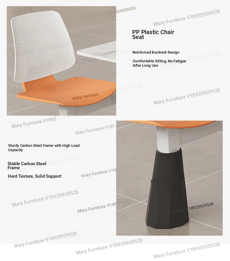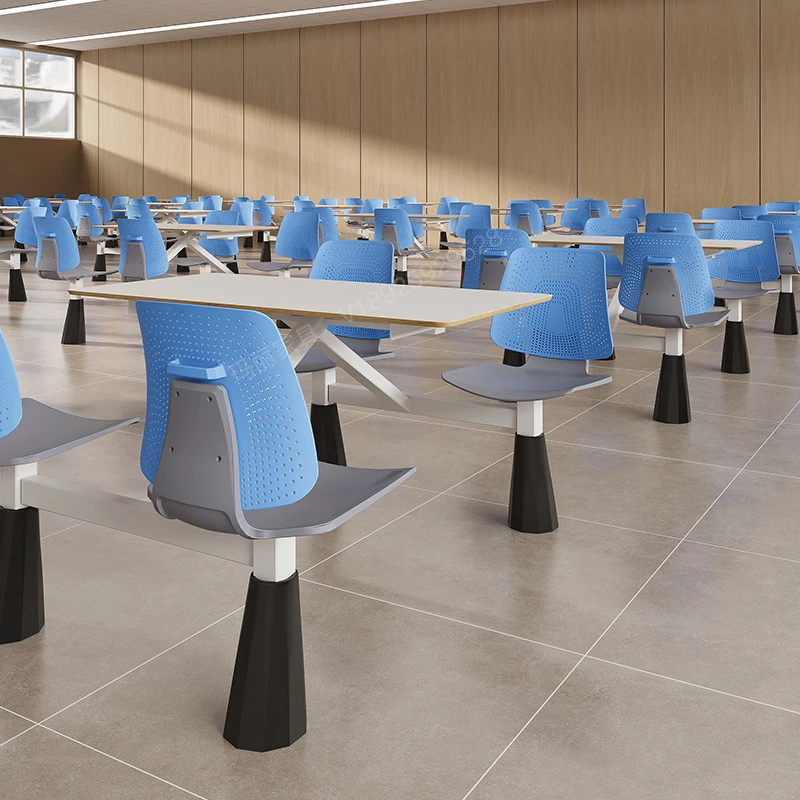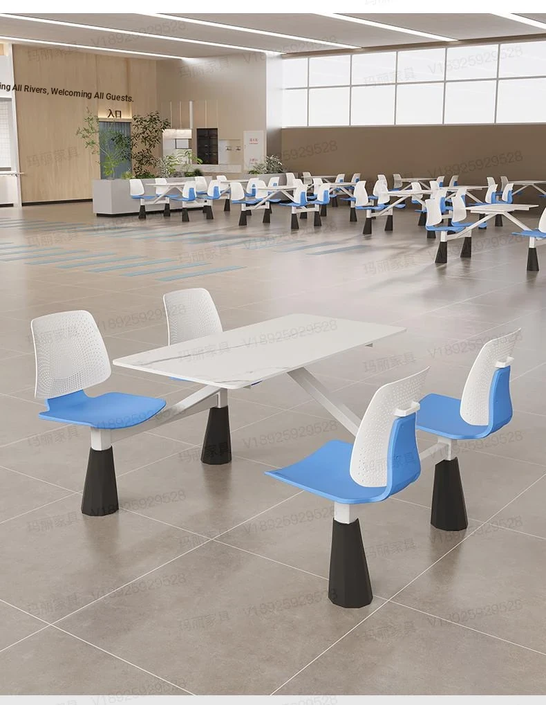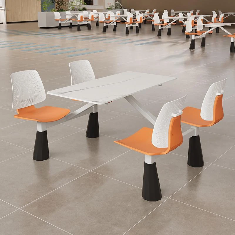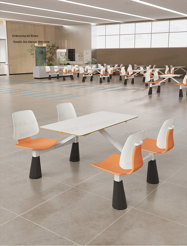 Fast Food Dining Table and Chair Set - Integrated Design for School Canteens, Staff Cafeterias, and Service Areas - 4-Person Group Dining Table for Efficient Dining Experience