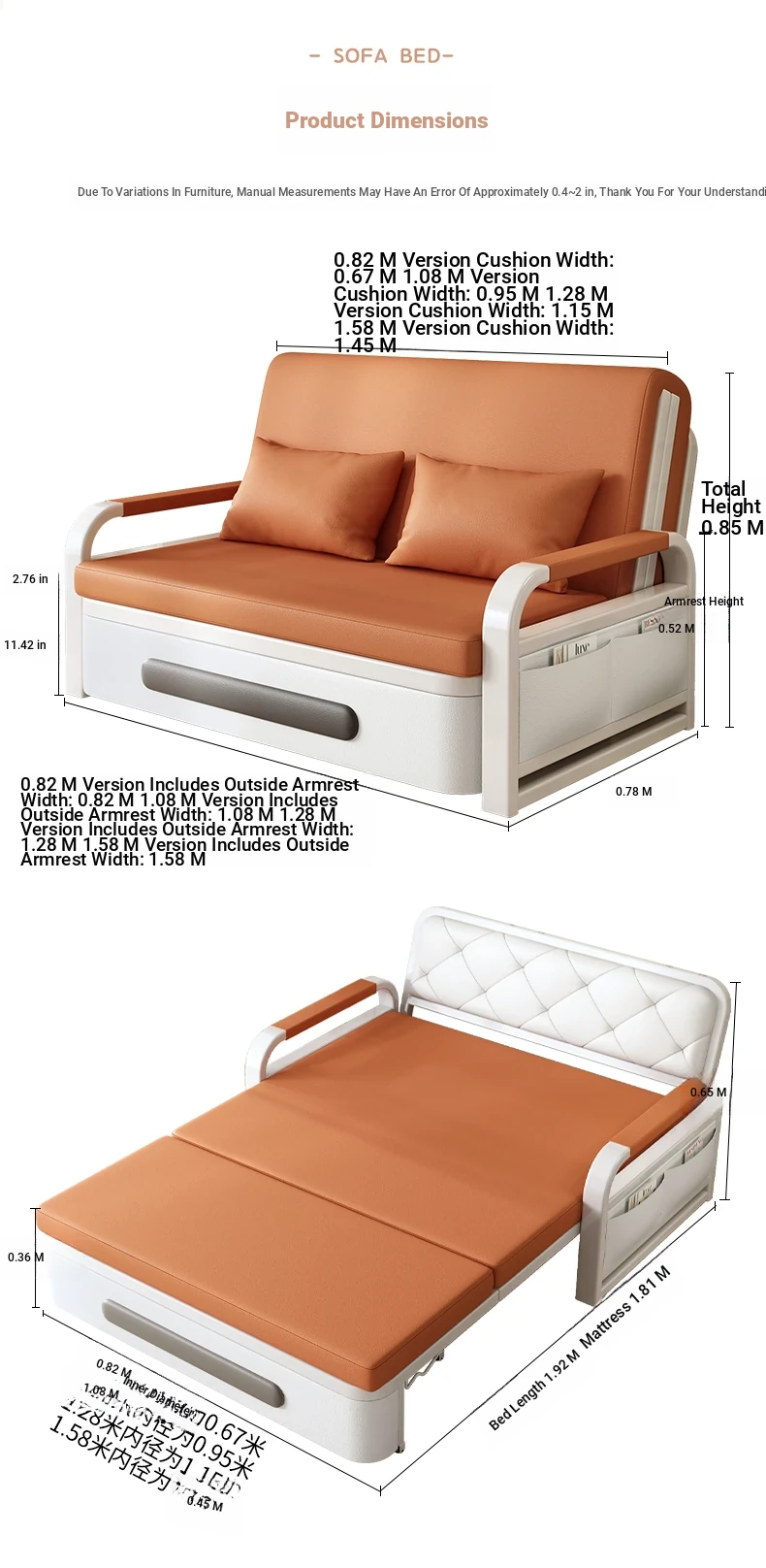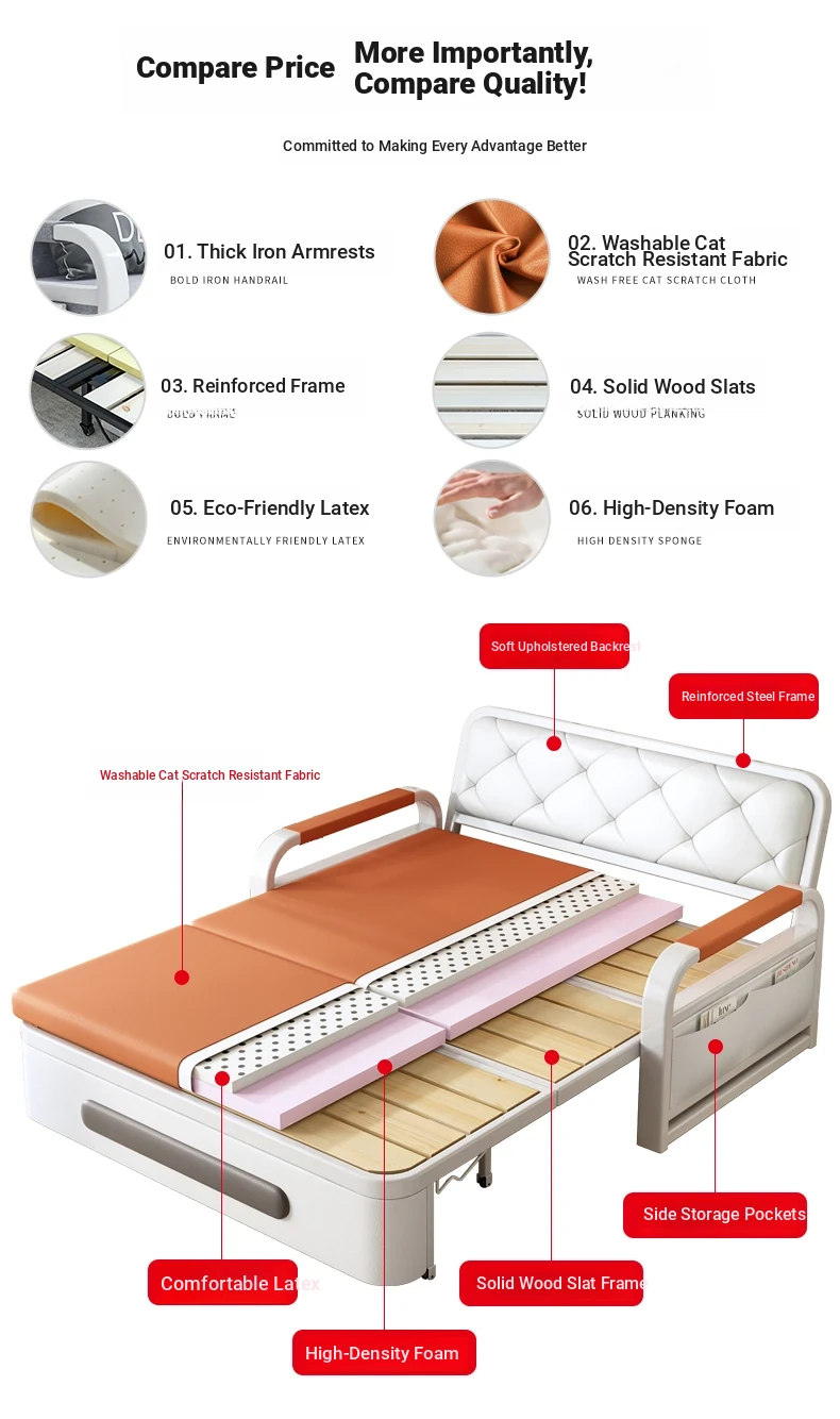 【Free Shipping in Hong Kong】2024 Stylish Folding Sofa Bed for Small Spaces - Versatile and Space-Saving Design, Perfect for Balconies and Modern Living!