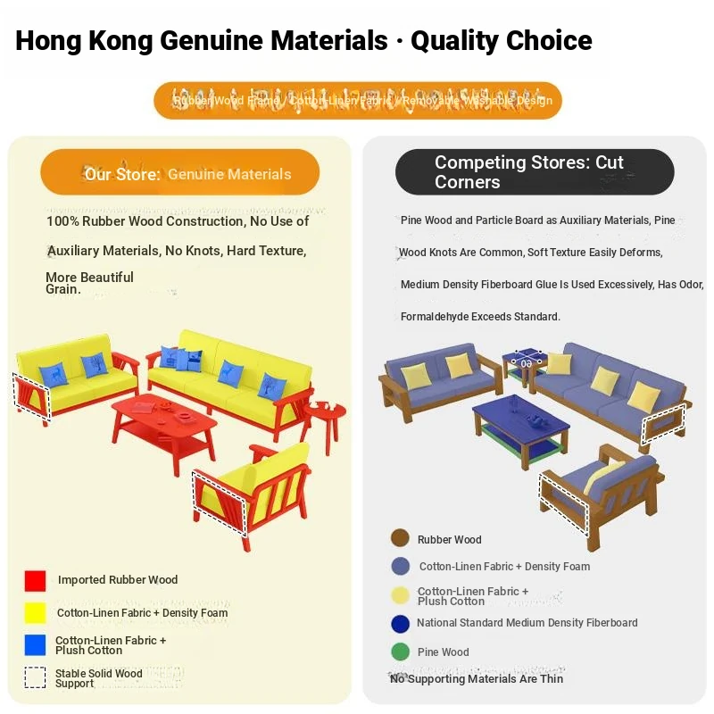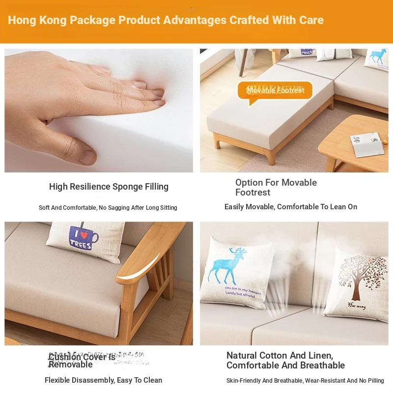 "Free Shipping to Hong Kong: Scandinavian Solid Wood Sofa Set - Modern Minimalist Design for Small Spaces, Perfect for Home Living Rooms with Fabric Upholstery"