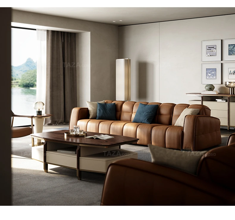 Italian Electric Sofa - Modern Luxury Full Leather Living Room Set for Villas, Perfect for Stylish Home Decor