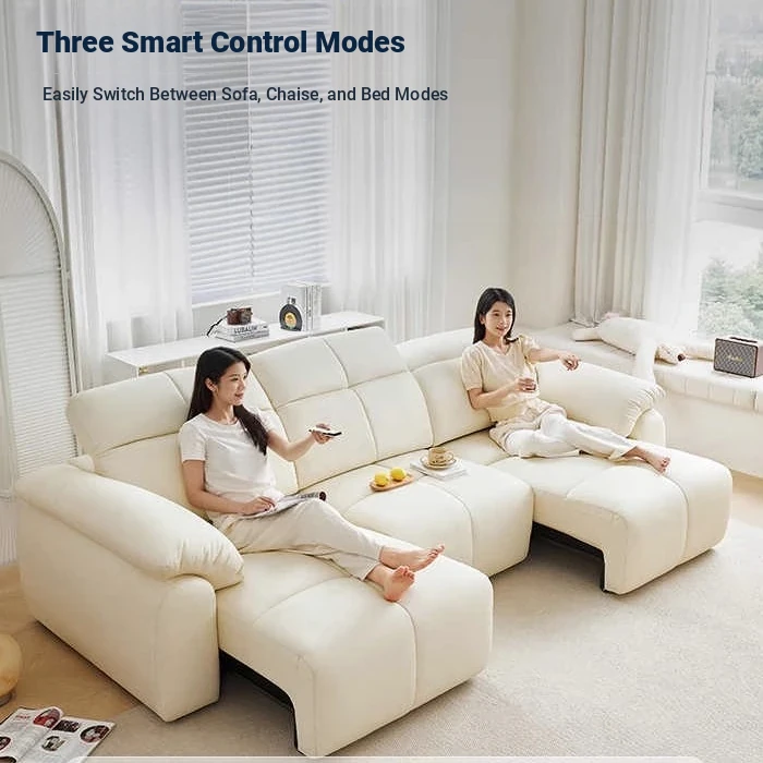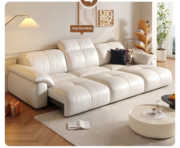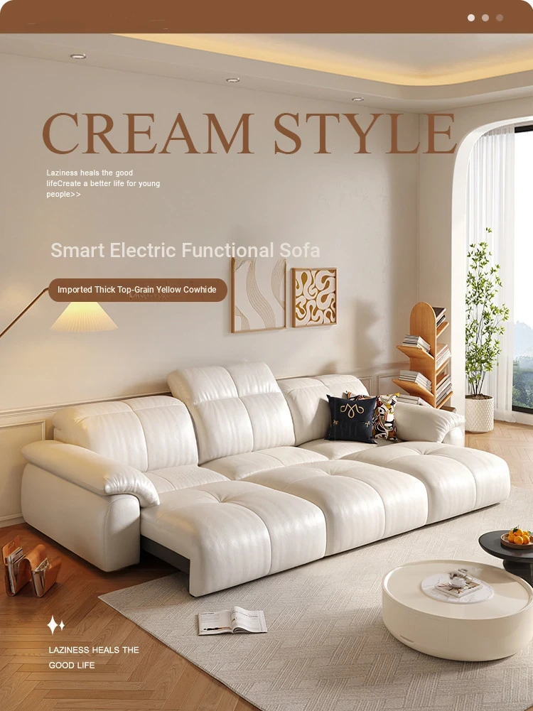 Luxurious Electric Puff Sofa Bed in Top-Grade Genuine Leather - Wall-Hugging Design for Creamy Living Rooms and Home Theaters - Adjustable Comfort for Ultimate Relaxation