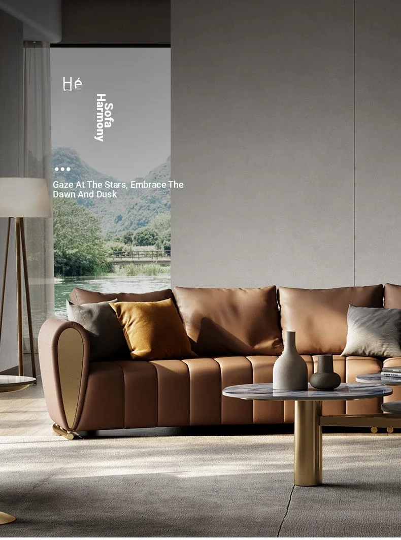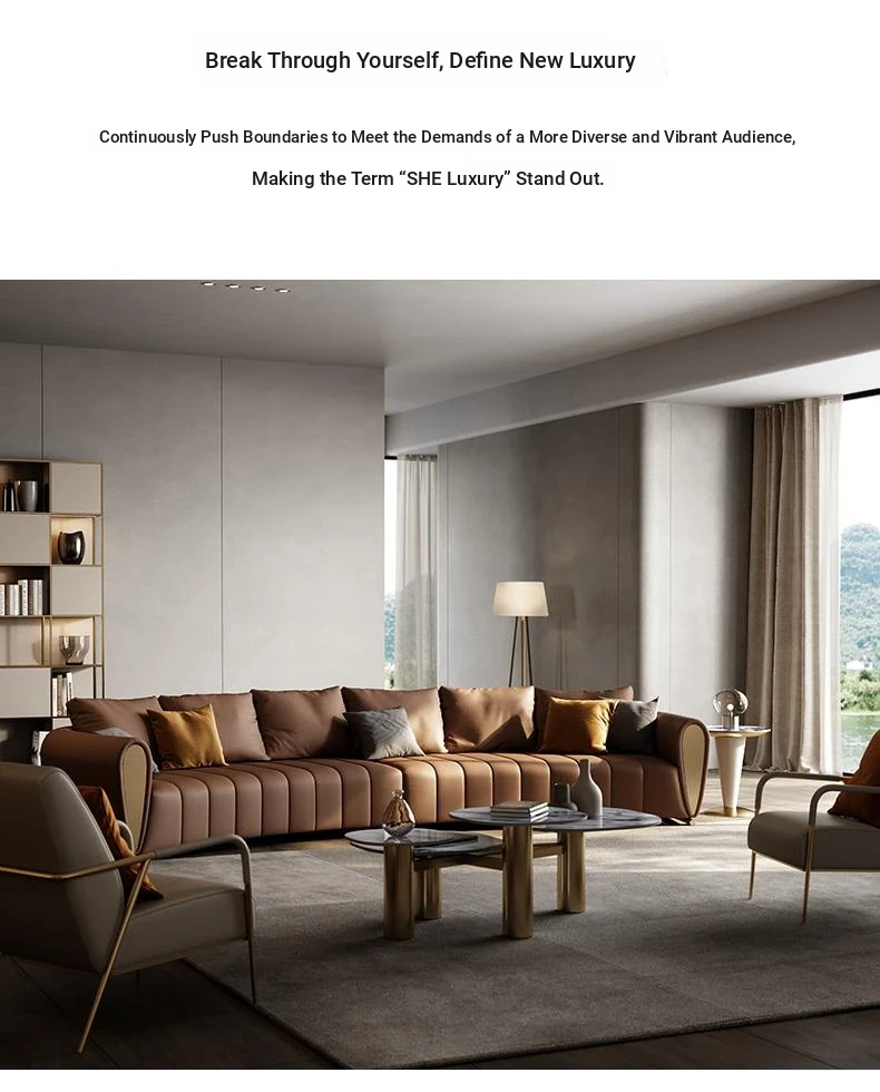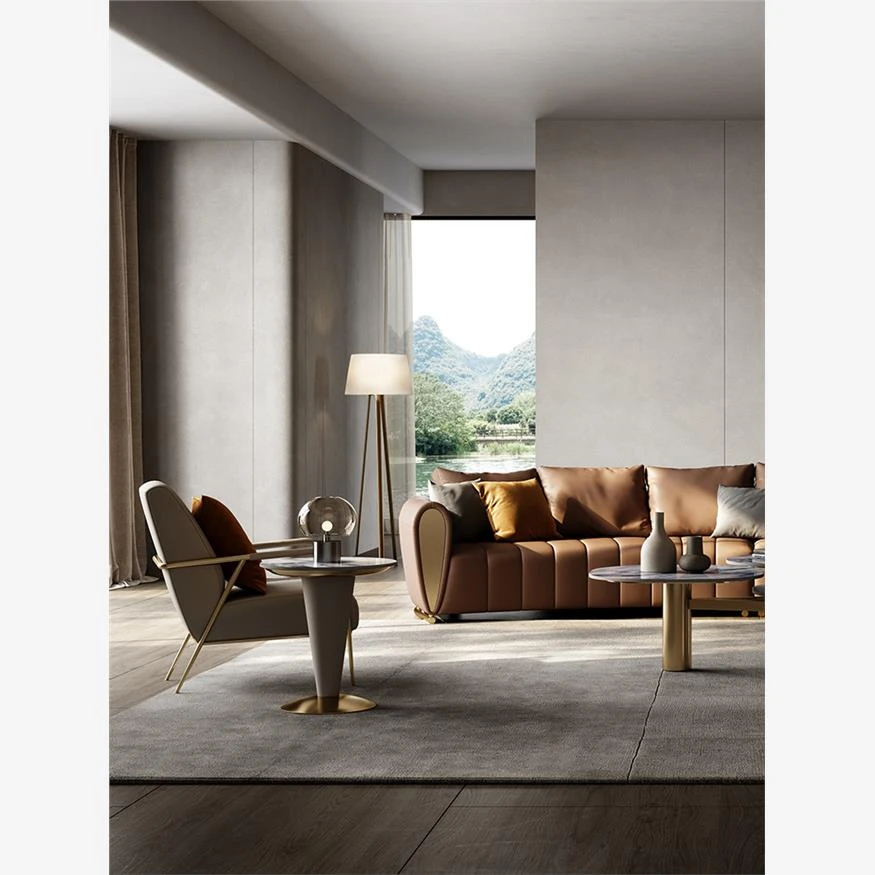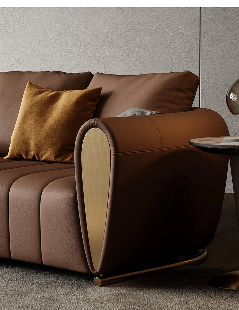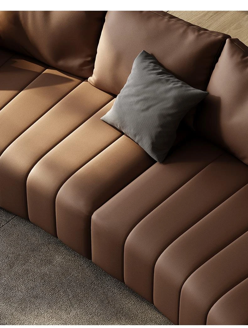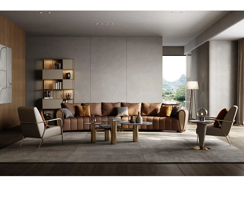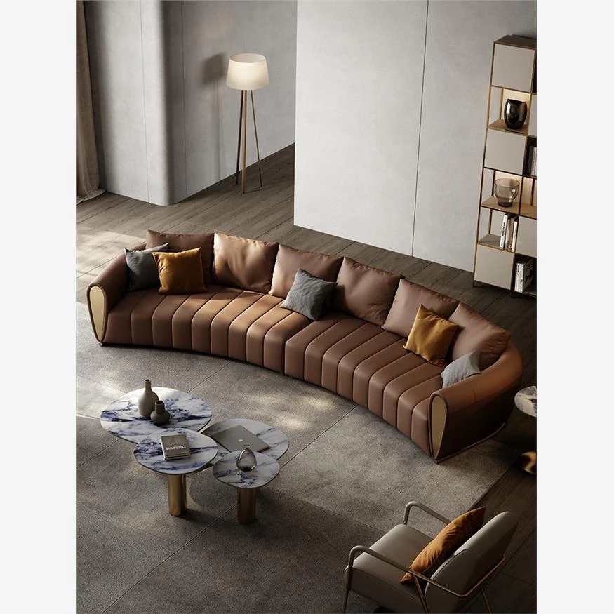 Luxury Curved Sofa for Spacious Villas - Premium Italian Minimalist Genuine Leather, Perfect for Large Living Rooms and High-End Hotels