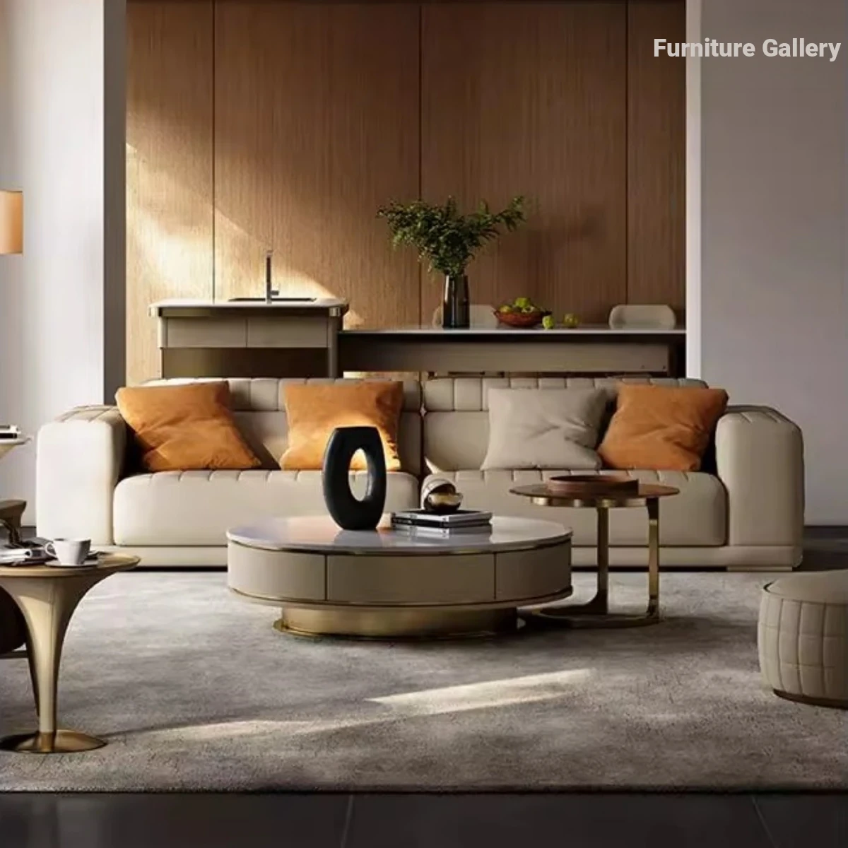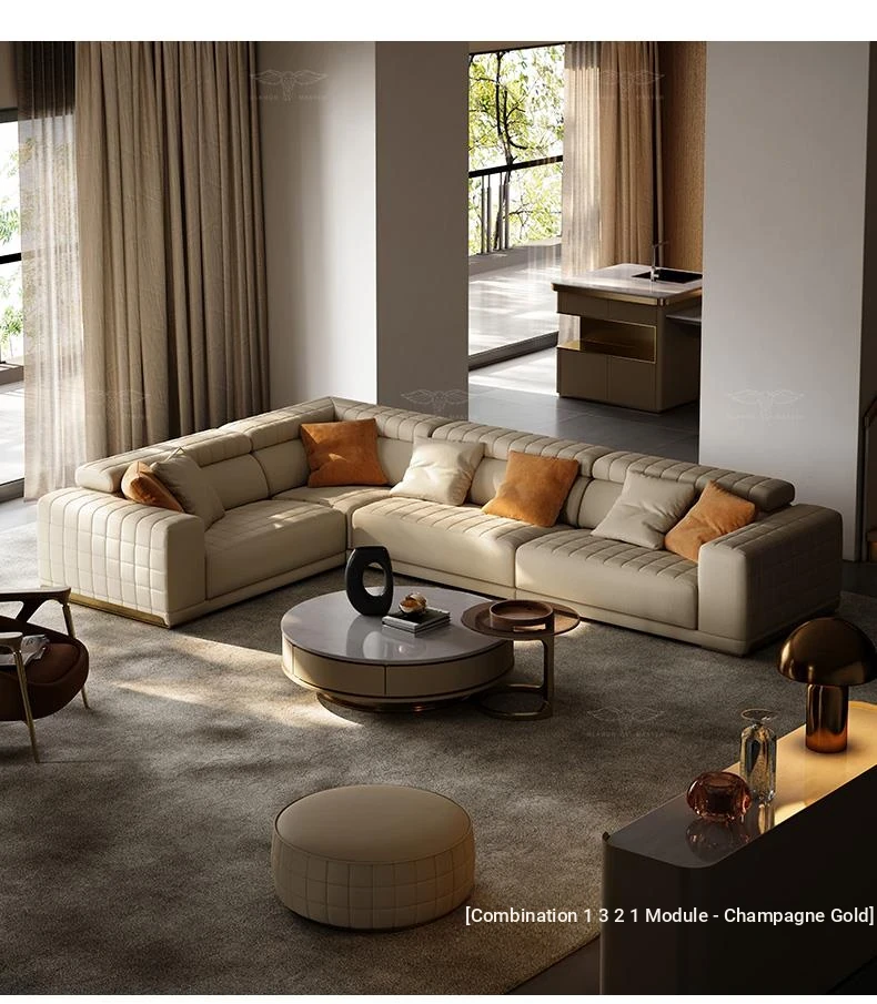 Functional sofa/combination ① ③ ② ① module/V grade full leather/champagne gold