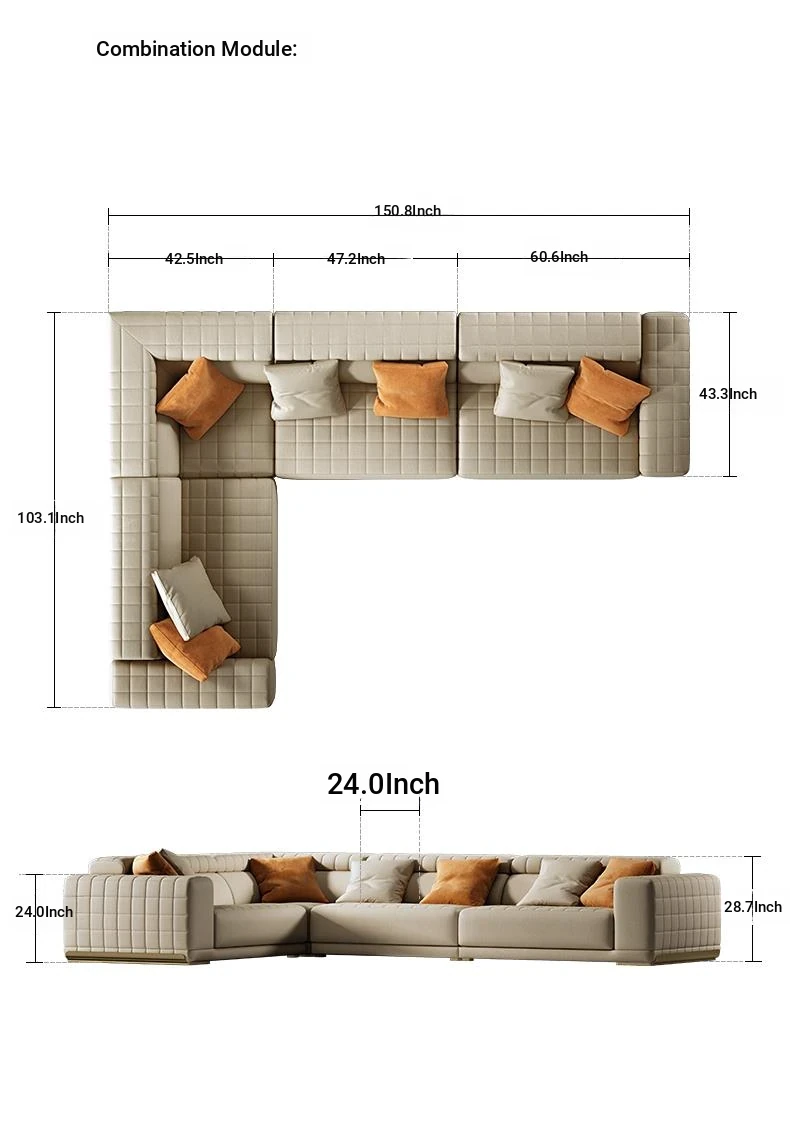 Functional sofa/combination ① ② ① module/S Grade half leather/champagne gold