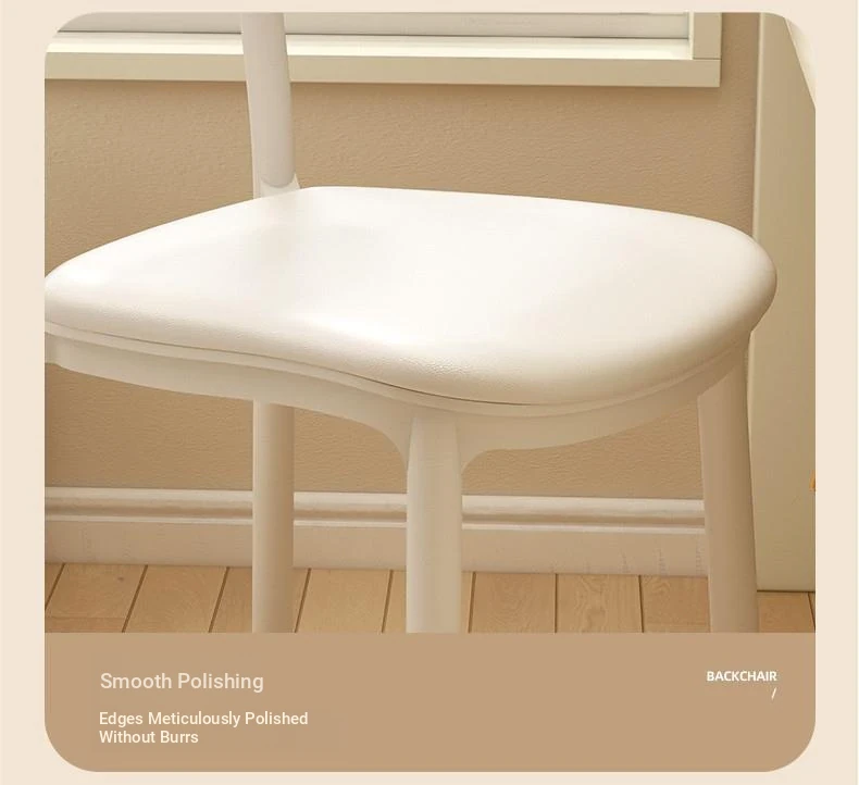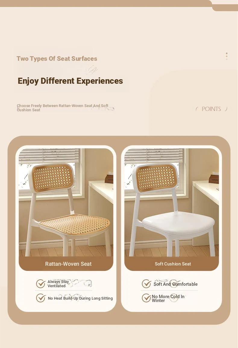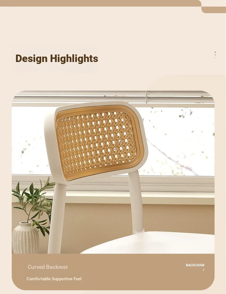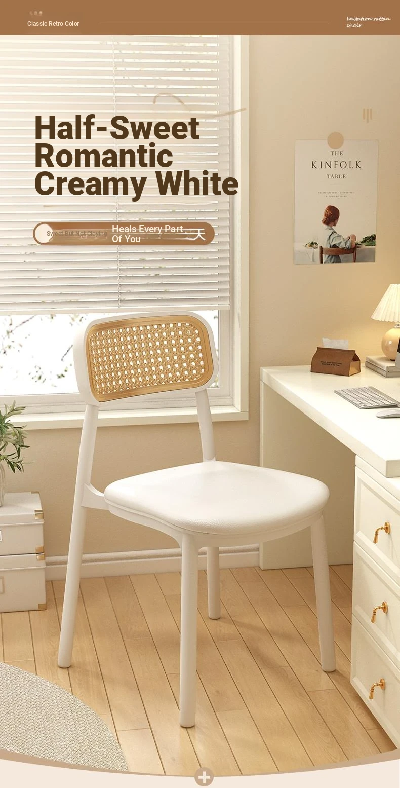 Minimalist Makeup Chair for Girls' Bedrooms - Creamy Rattan Vanity Stool, Perfect for Small Spaces, Dining Room, and Study Desk.