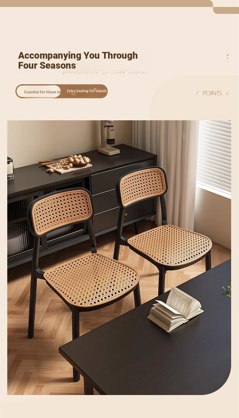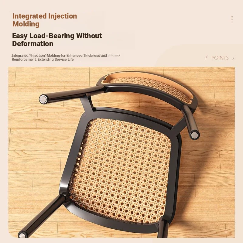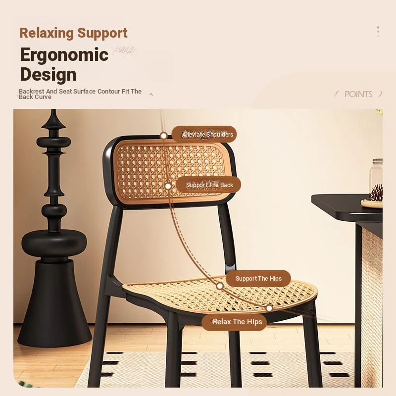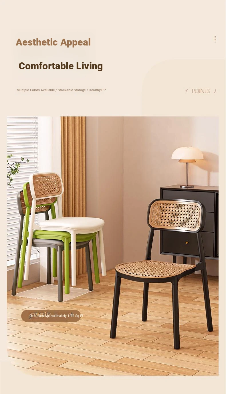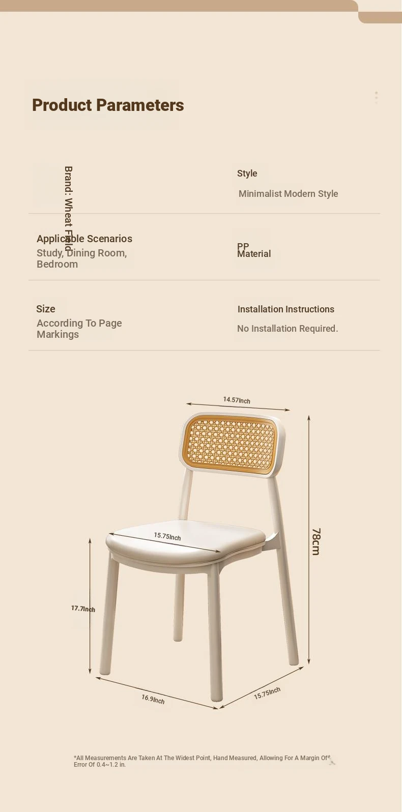 Minimalist Makeup Chair for Girls' Bedrooms - Creamy Rattan Vanity Stool, Perfect for Small Spaces, Dining Room, and Study Desk.