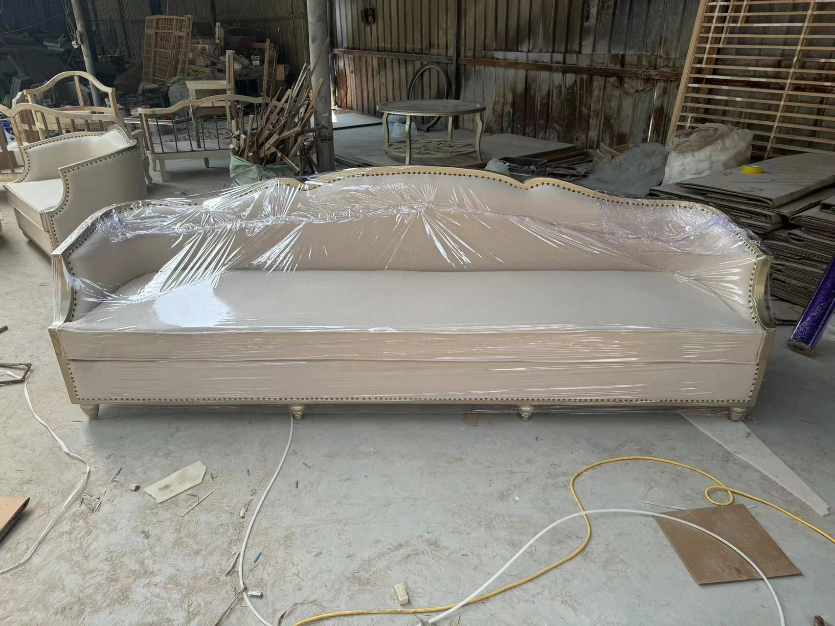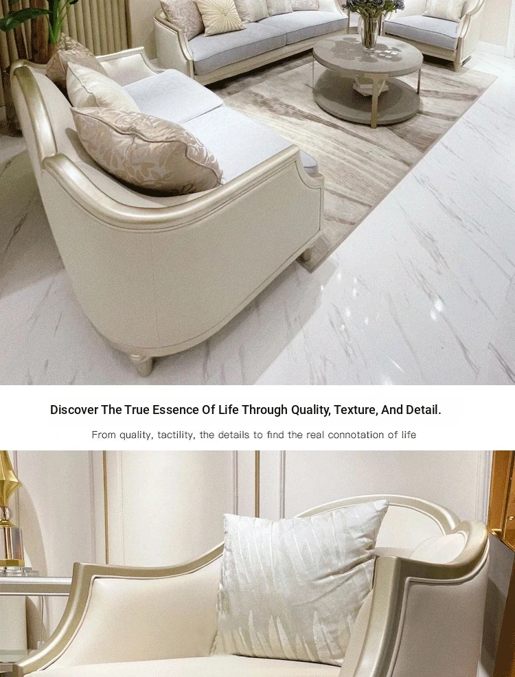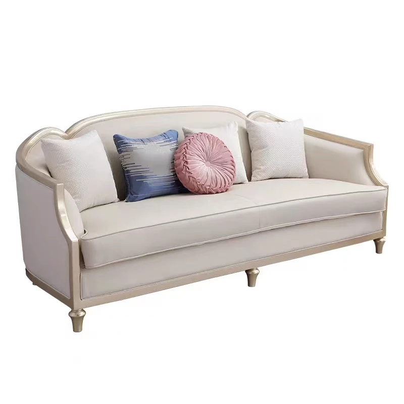 Modern American Light Luxury Solid Wood Sofa with Minimalist Design - French Elegance Meets European High-End Furniture for Your Living Room.