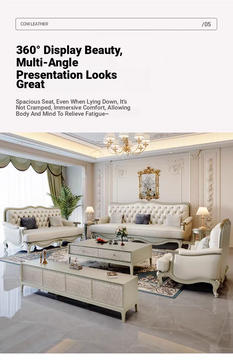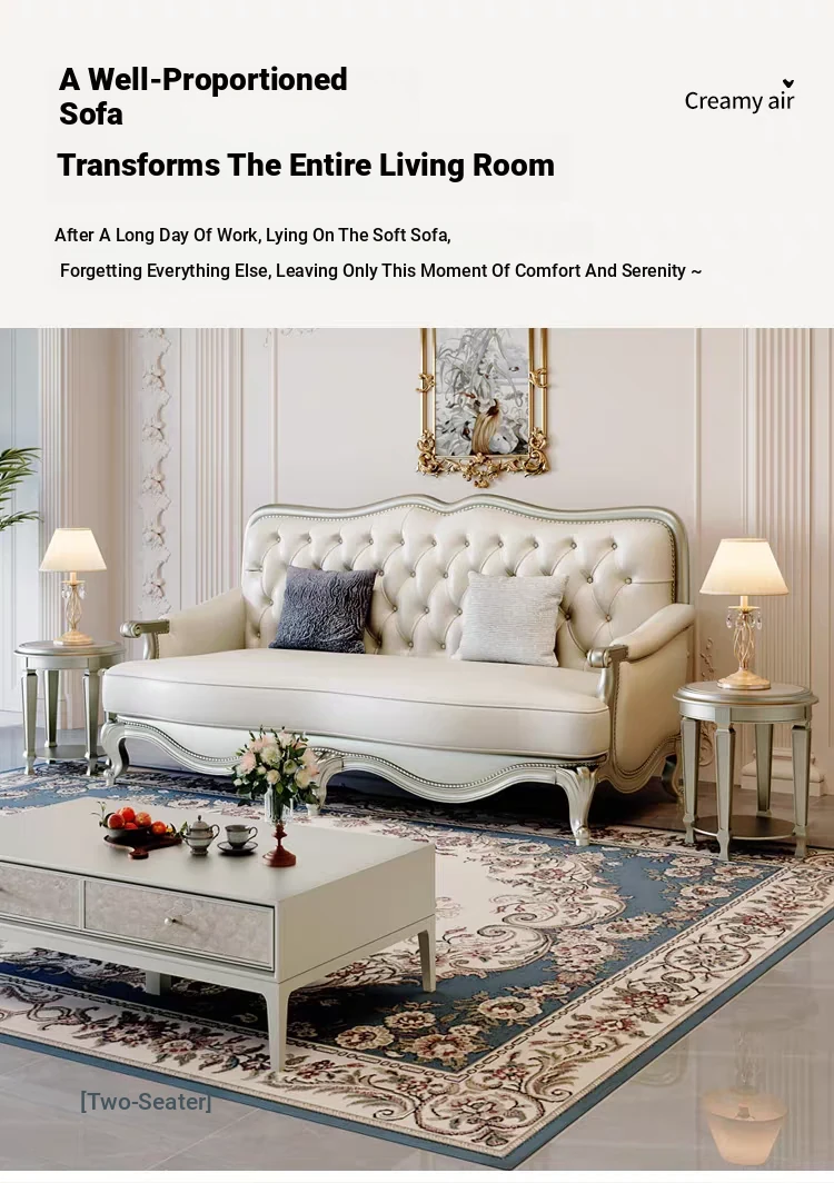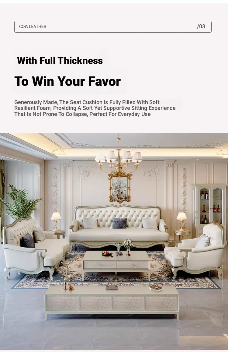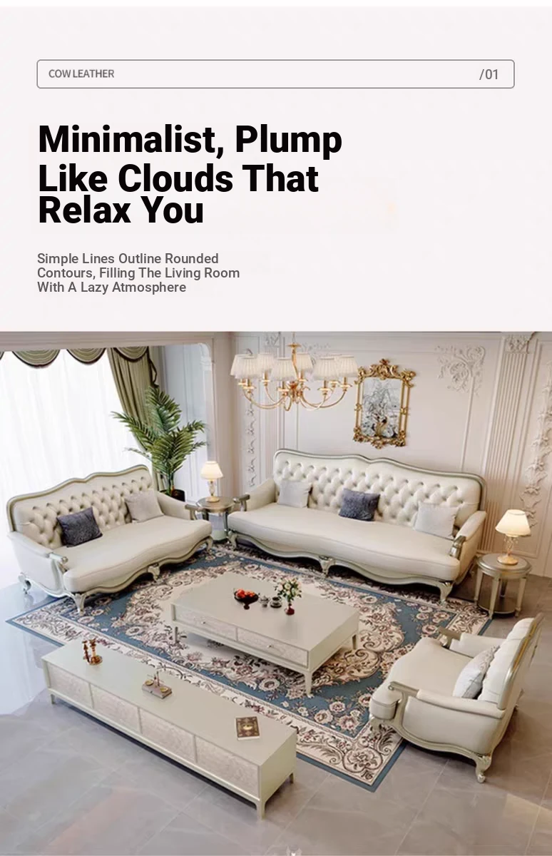Modern American Luxury Genuine Leather Sofa - French Style 1-2-3 Combination for Small and Large Spaces, Elegant Solid Wood Design for Villa Living Rooms