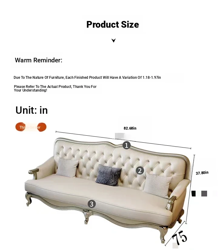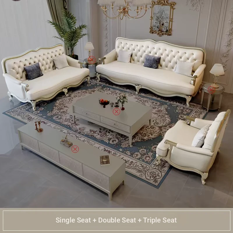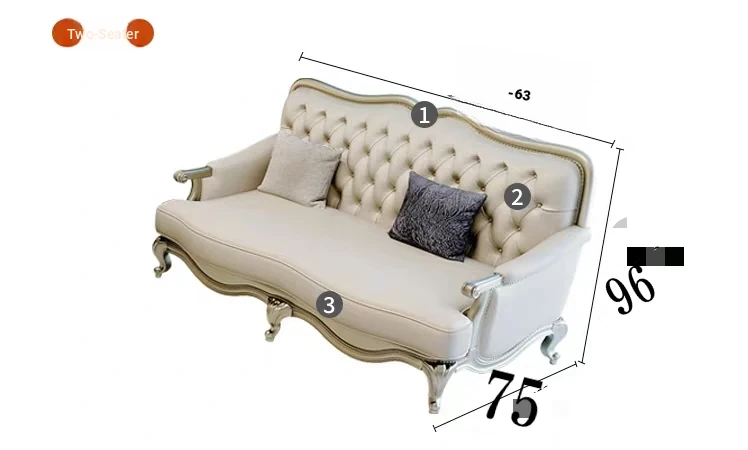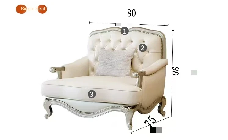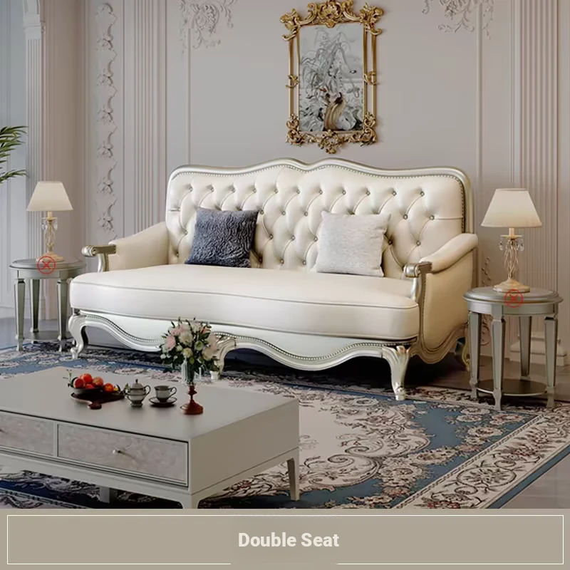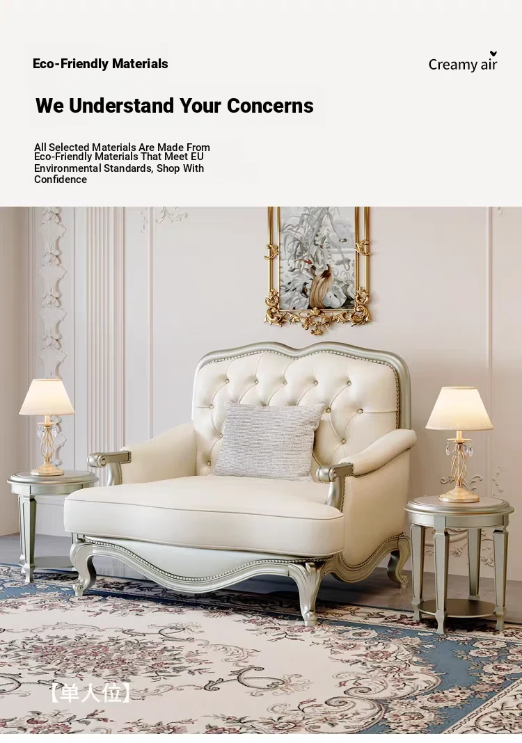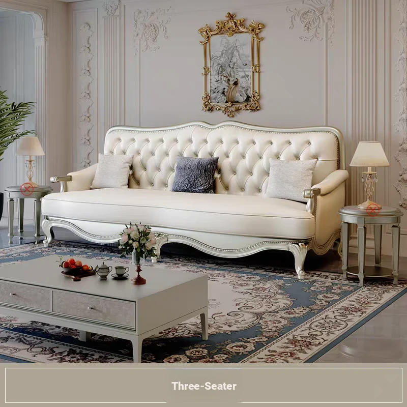 Modern American Luxury Genuine Leather Sofa - French Style 1-2-3 Combination for Small and Large Spaces, Elegant Solid Wood Design for Villa Living Rooms