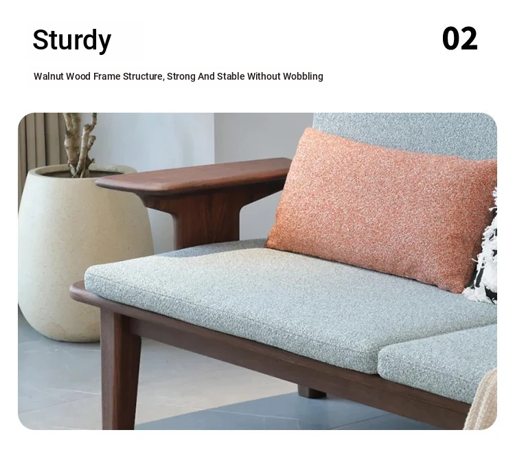 Modern Chinese Walnut Wood Solid Sofa for Small Spaces - Versatile, Washable Fabric Sofa for Year-Round Comfort