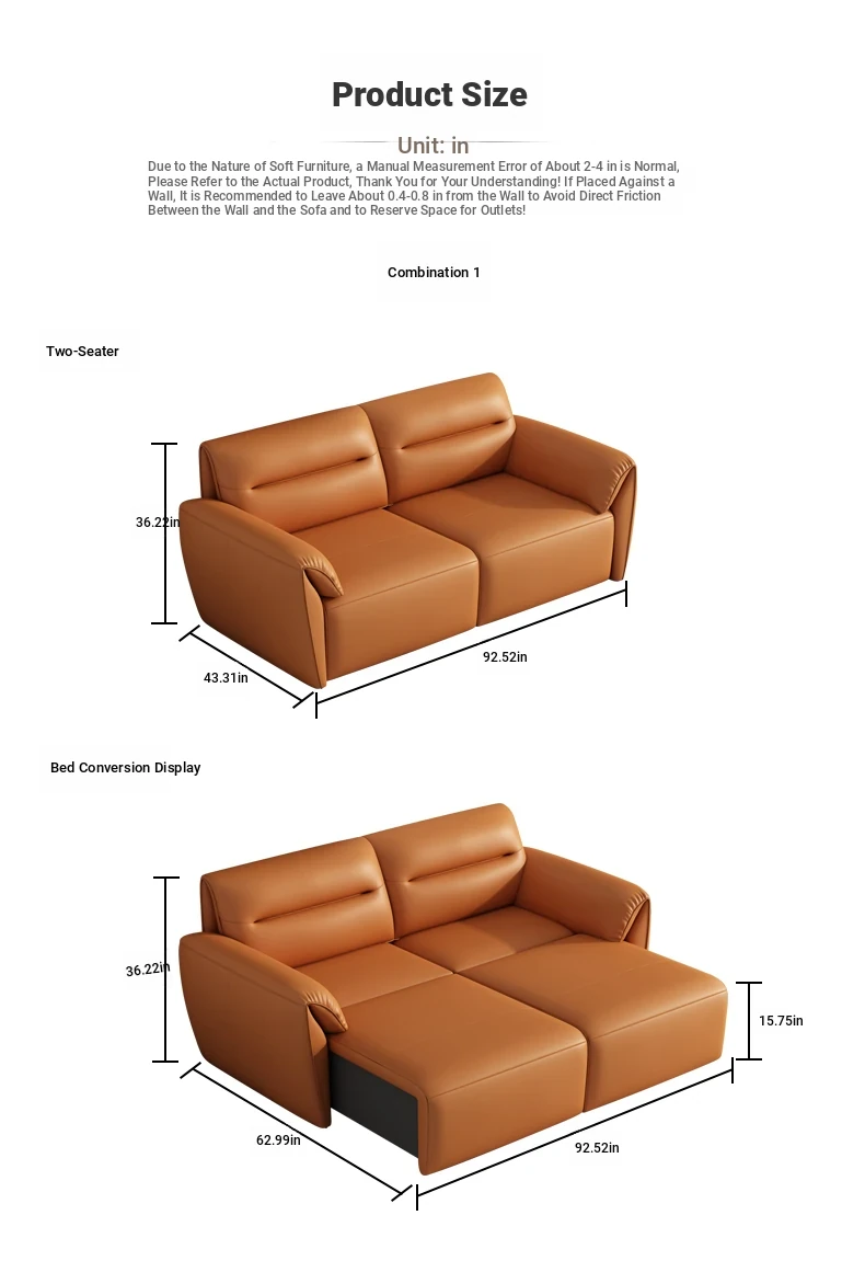 MongSika Remote-Controlled Adjustable Leather Sofa Bed - Italian Luxury Electric Modular Sofa for Small to Large Living Spaces