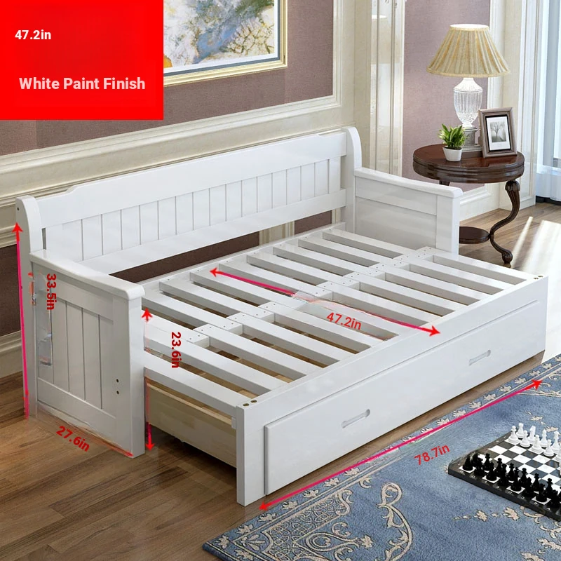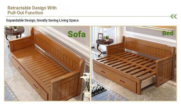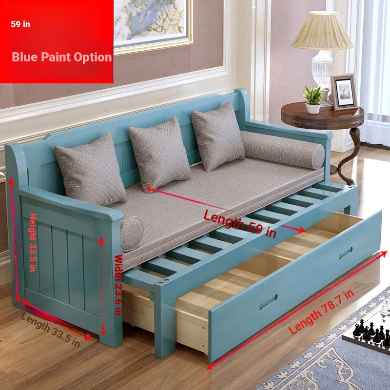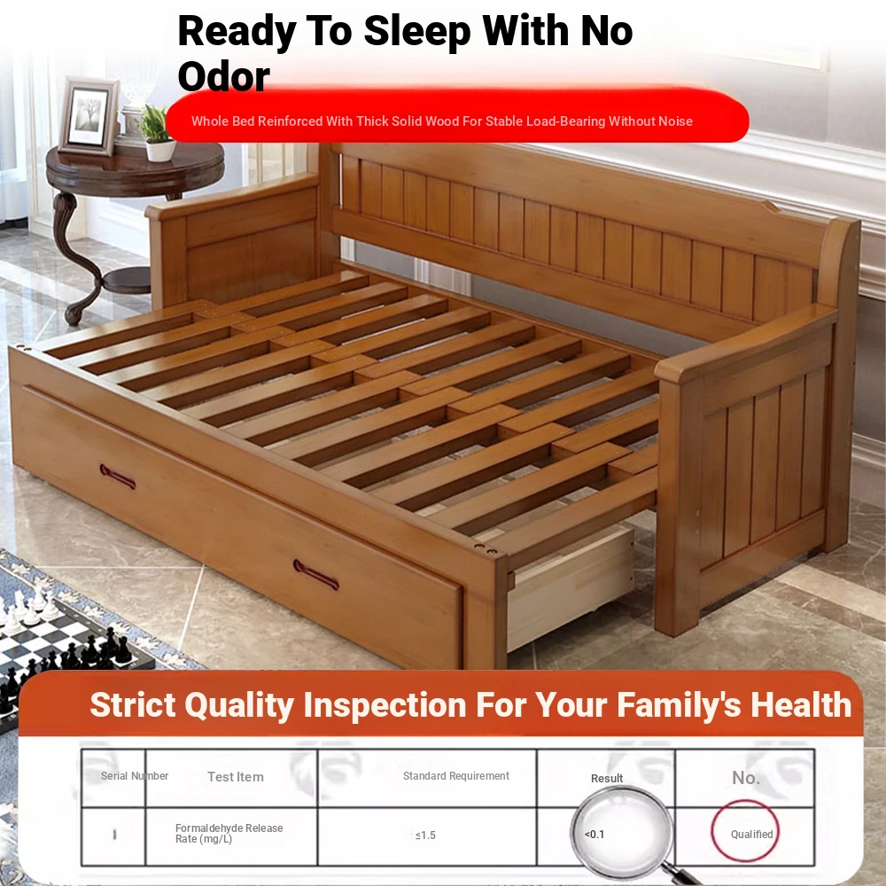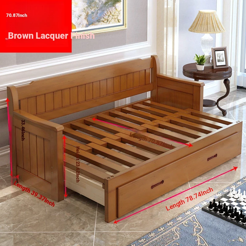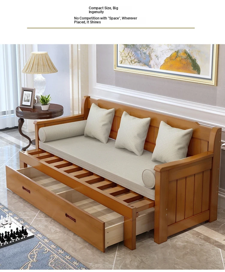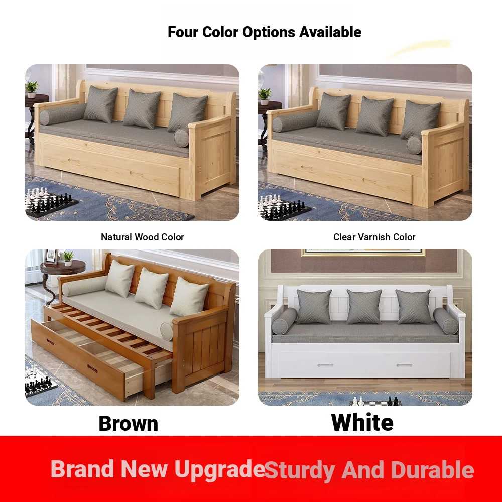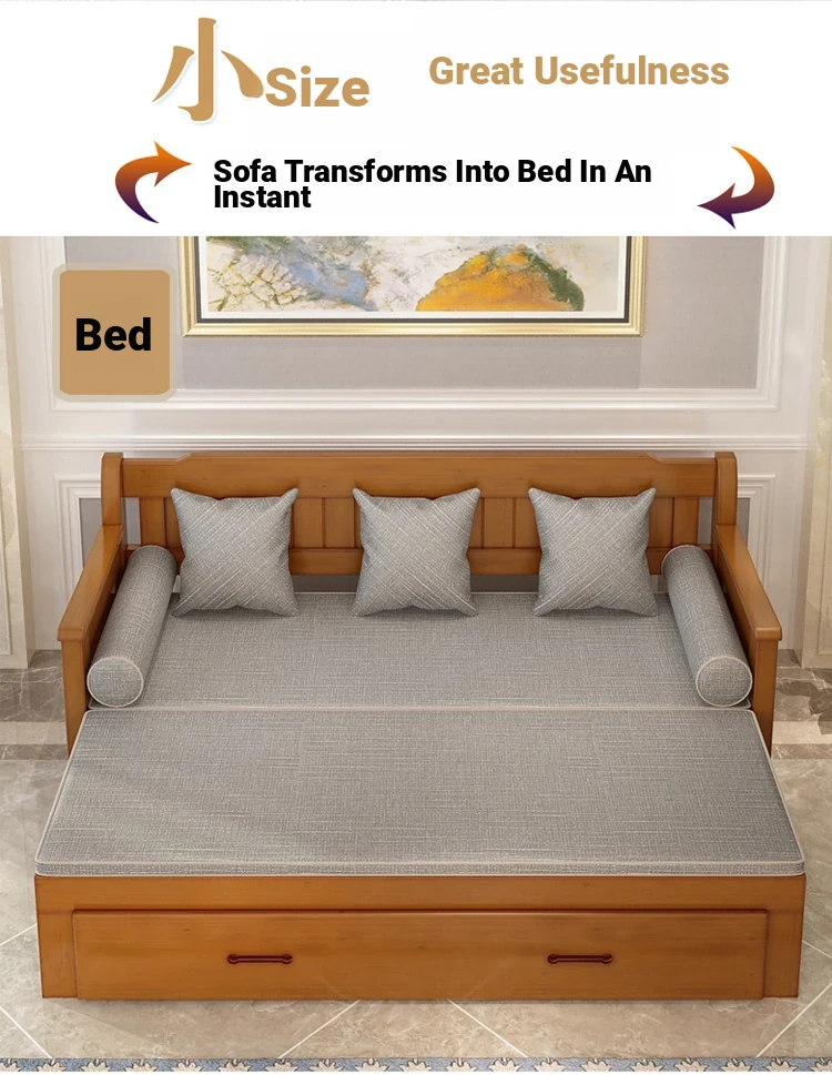 Multifunctional Solid Wood Sofa Bed for Living Room - Foldable, Pull-Out Design for Small Spaces, 1.5m and 1.8m Options, Perfect for Couples, Dual Use as Sofa and Bed, Ideal for Compact Living!