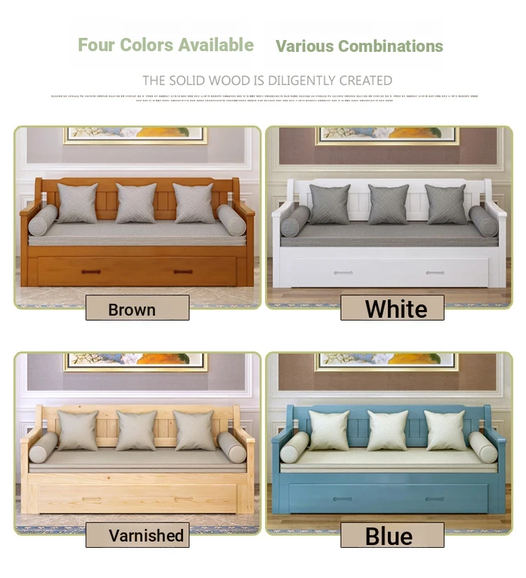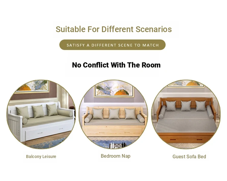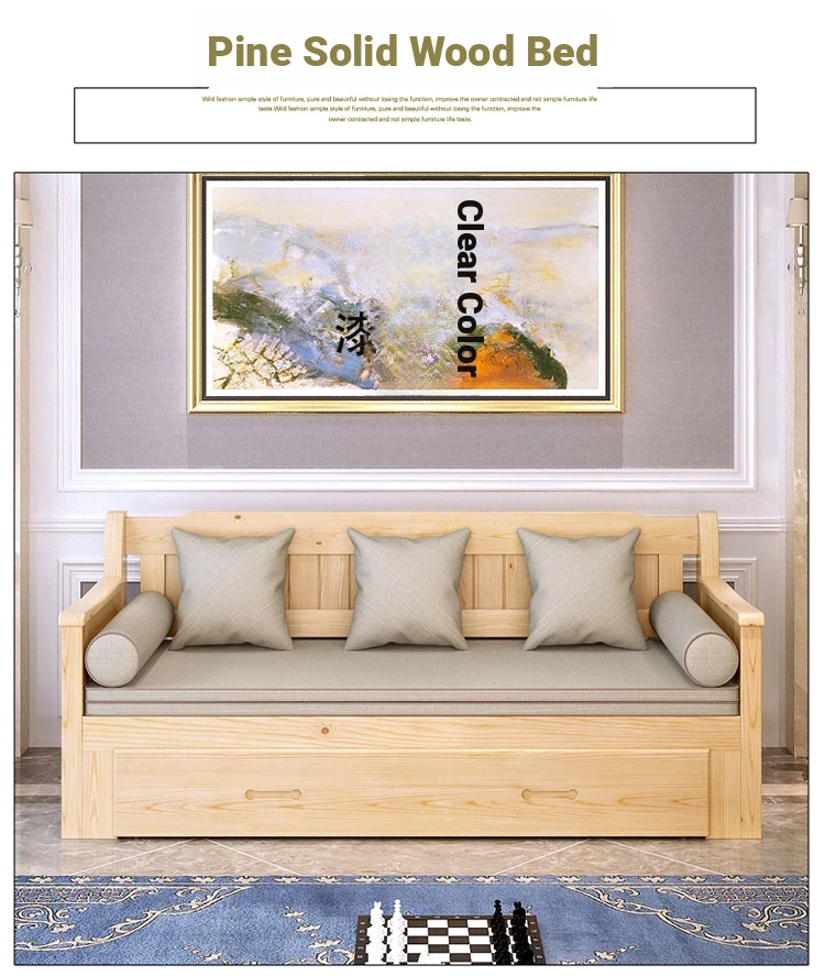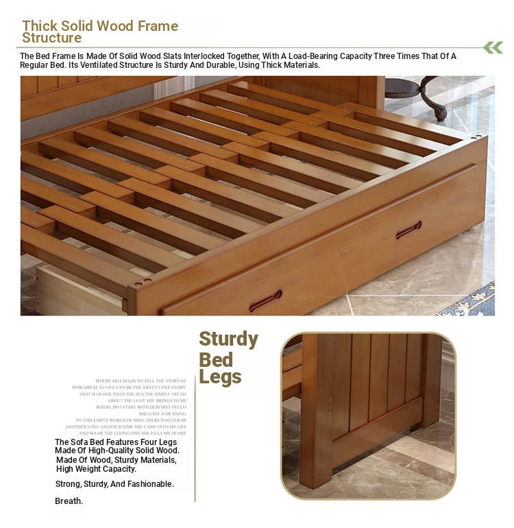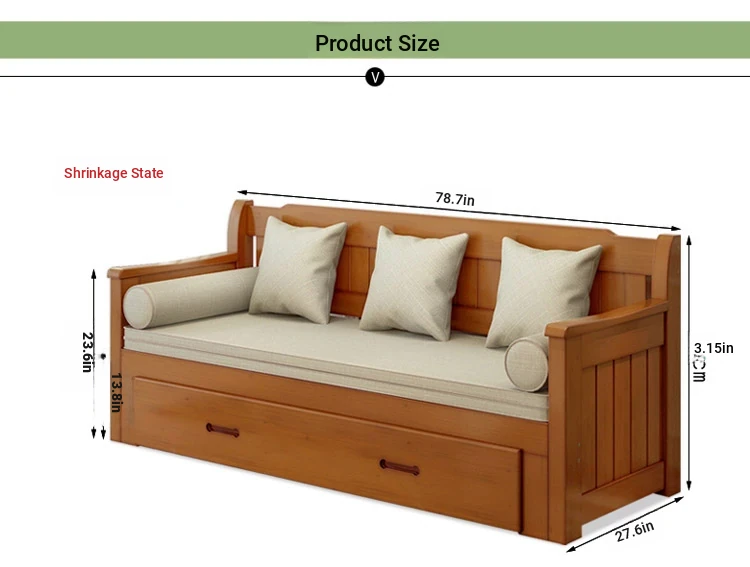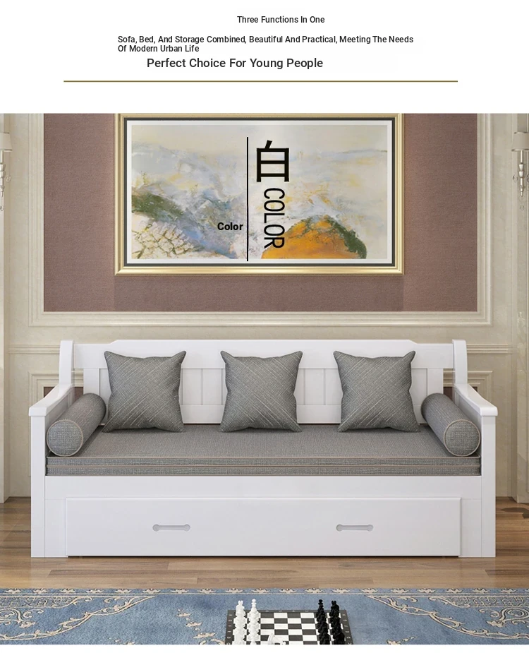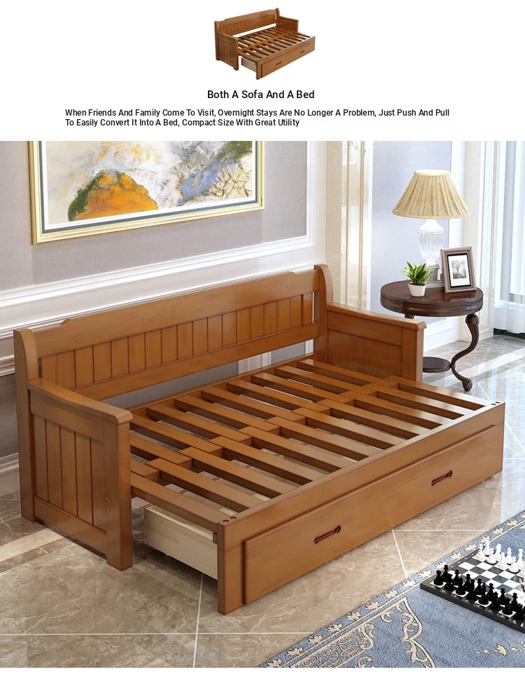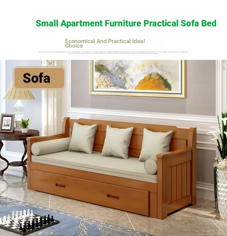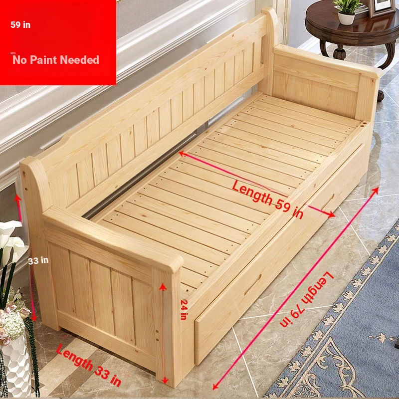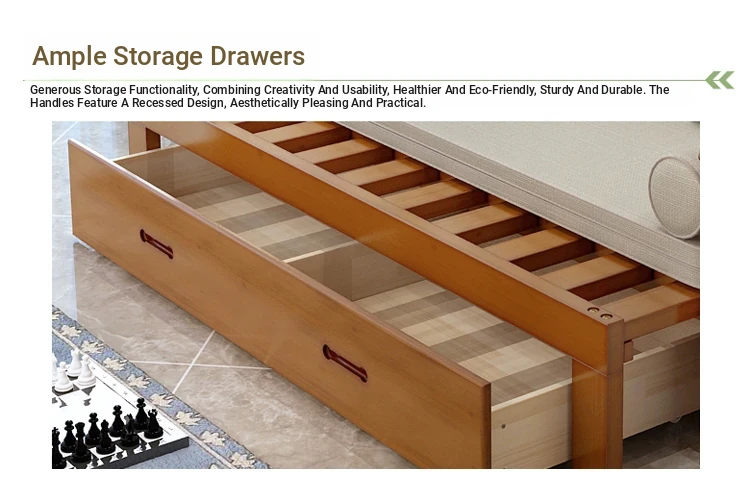 Multifunctional Solid Wood Sofa Bed for Living Room - Foldable, Pull-Out Design for Small Spaces, 1.5m and 1.8m Options, Perfect for Couples, Dual Use as Sofa and Bed, Ideal for Compact Living!