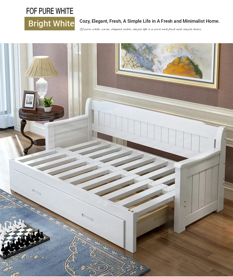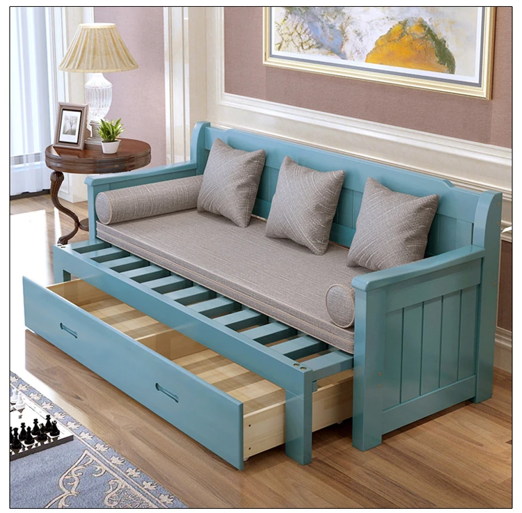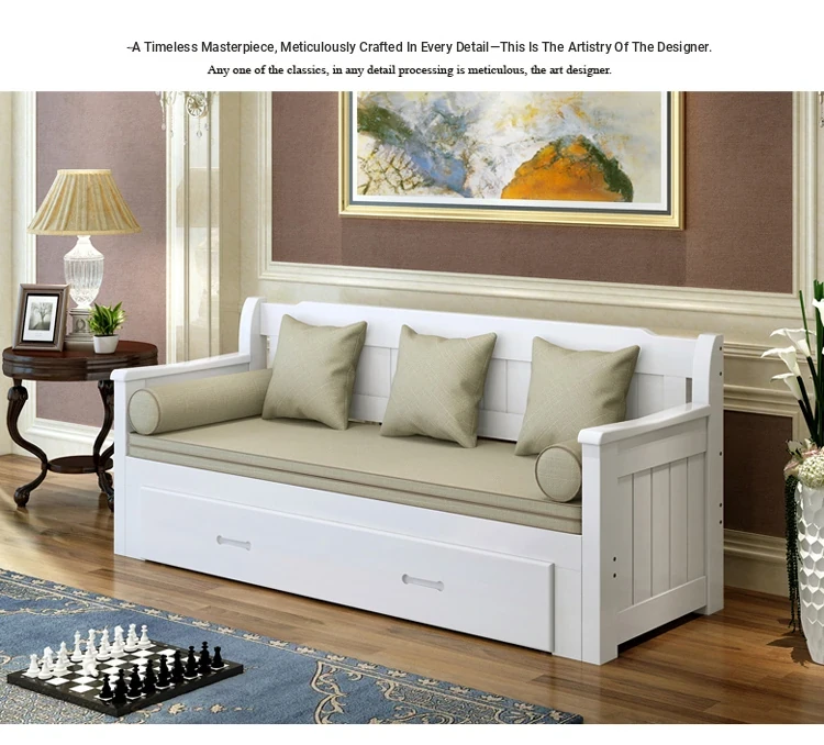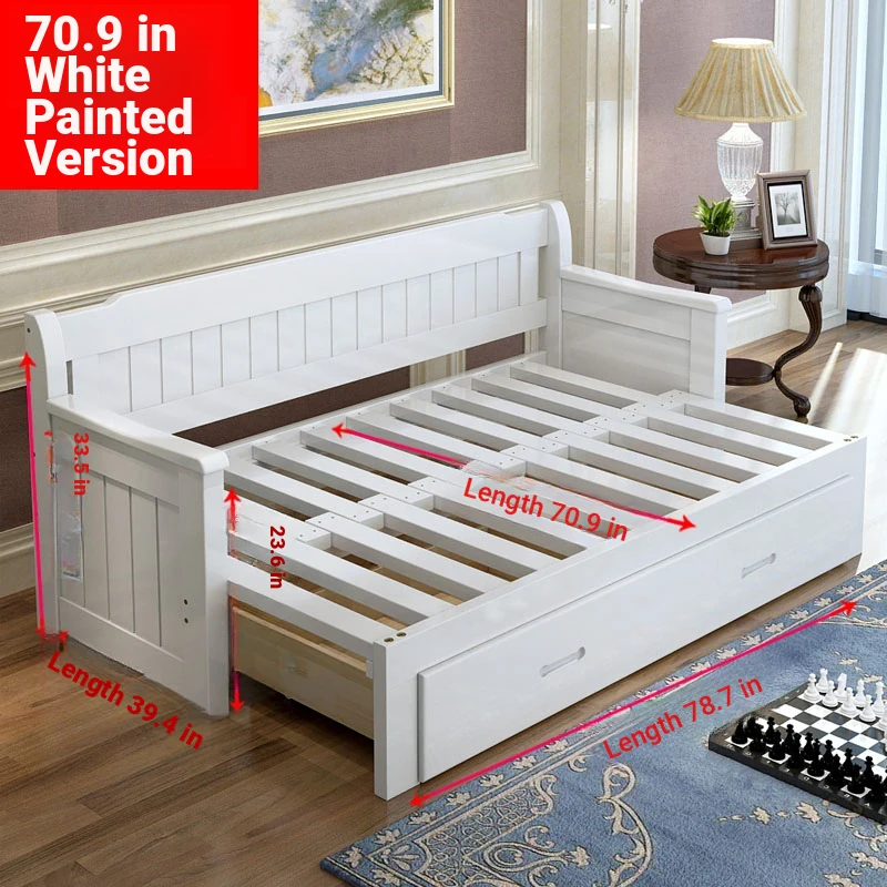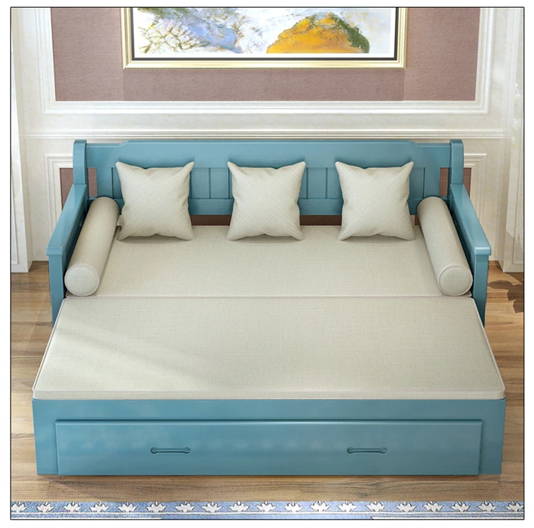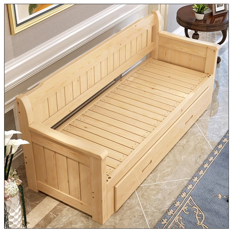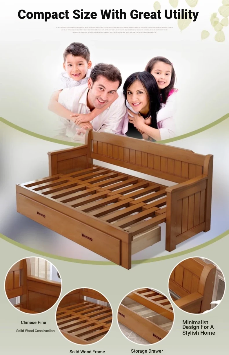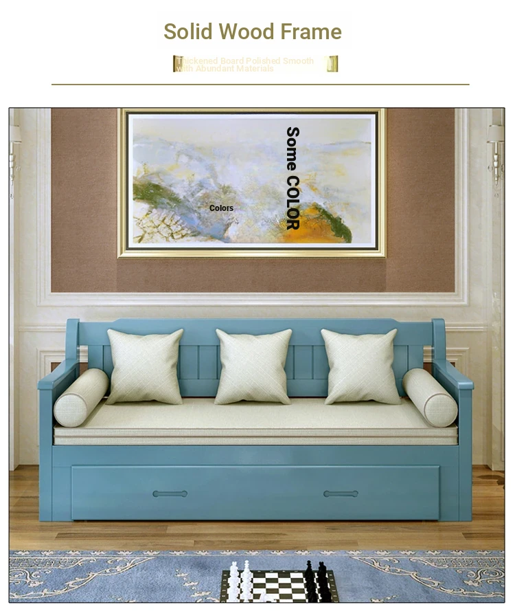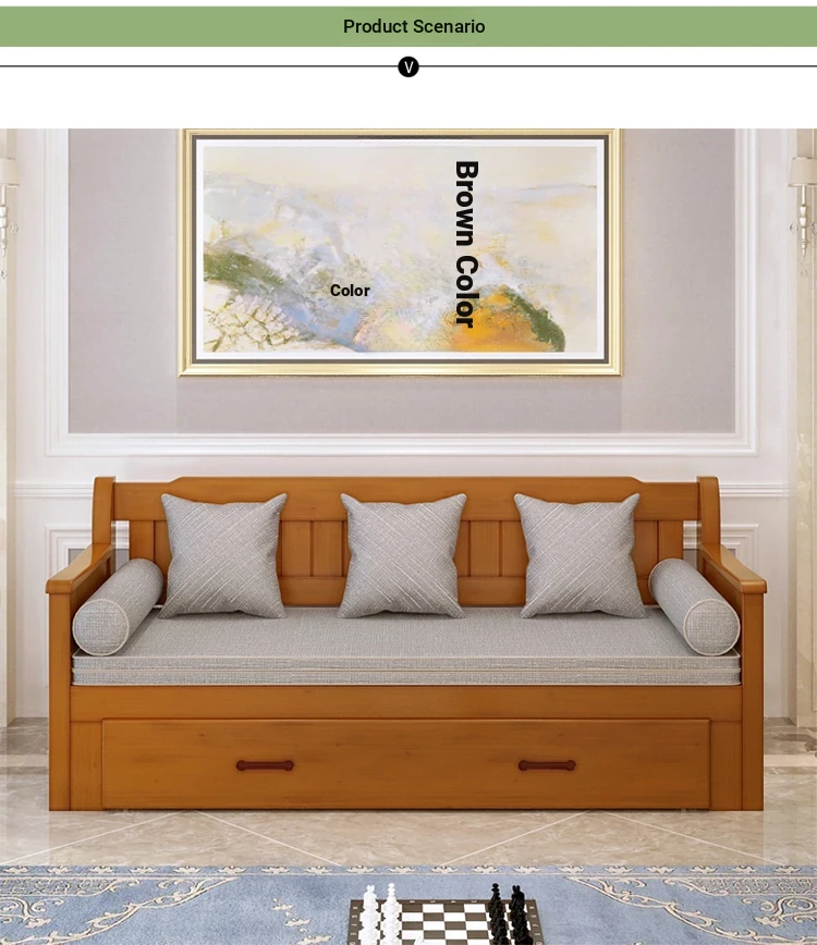 Multifunctional Solid Wood Sofa Bed for Living Room - Foldable, Pull-Out Design for Small Spaces, 1.5m and 1.8m Options, Perfect for Couples, Dual Use as Sofa and Bed, Ideal for Compact Living!